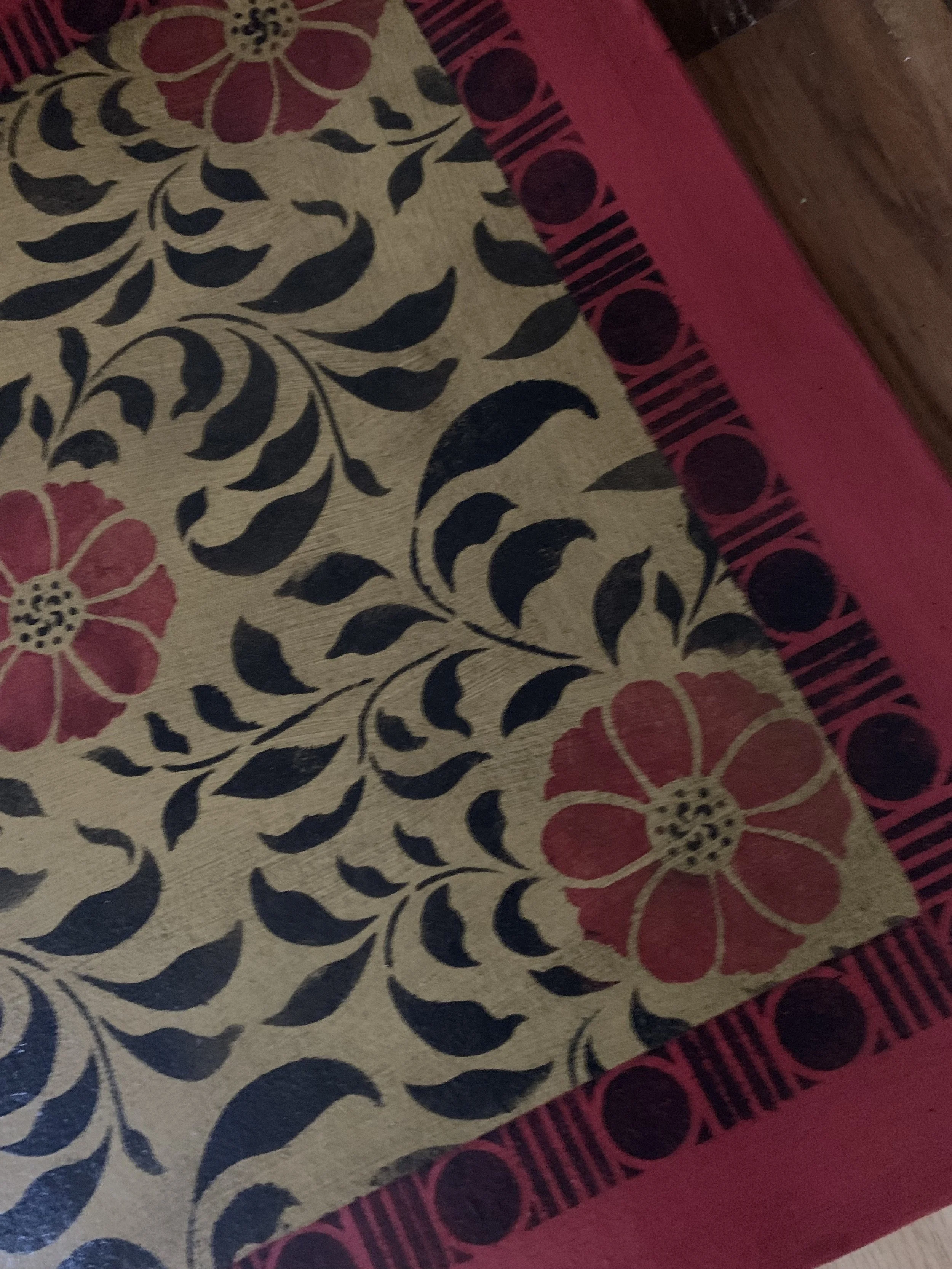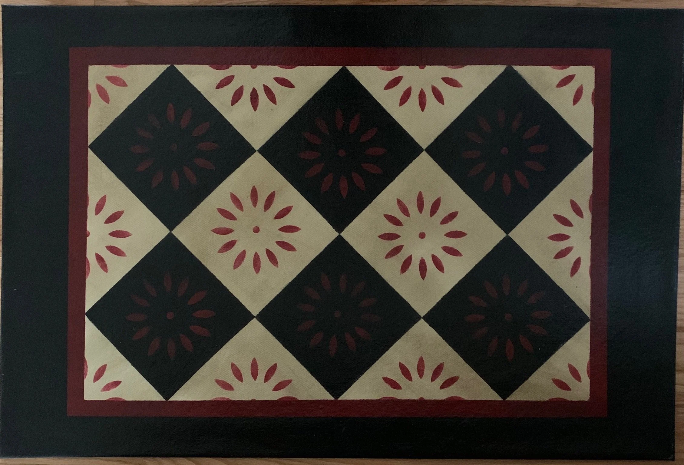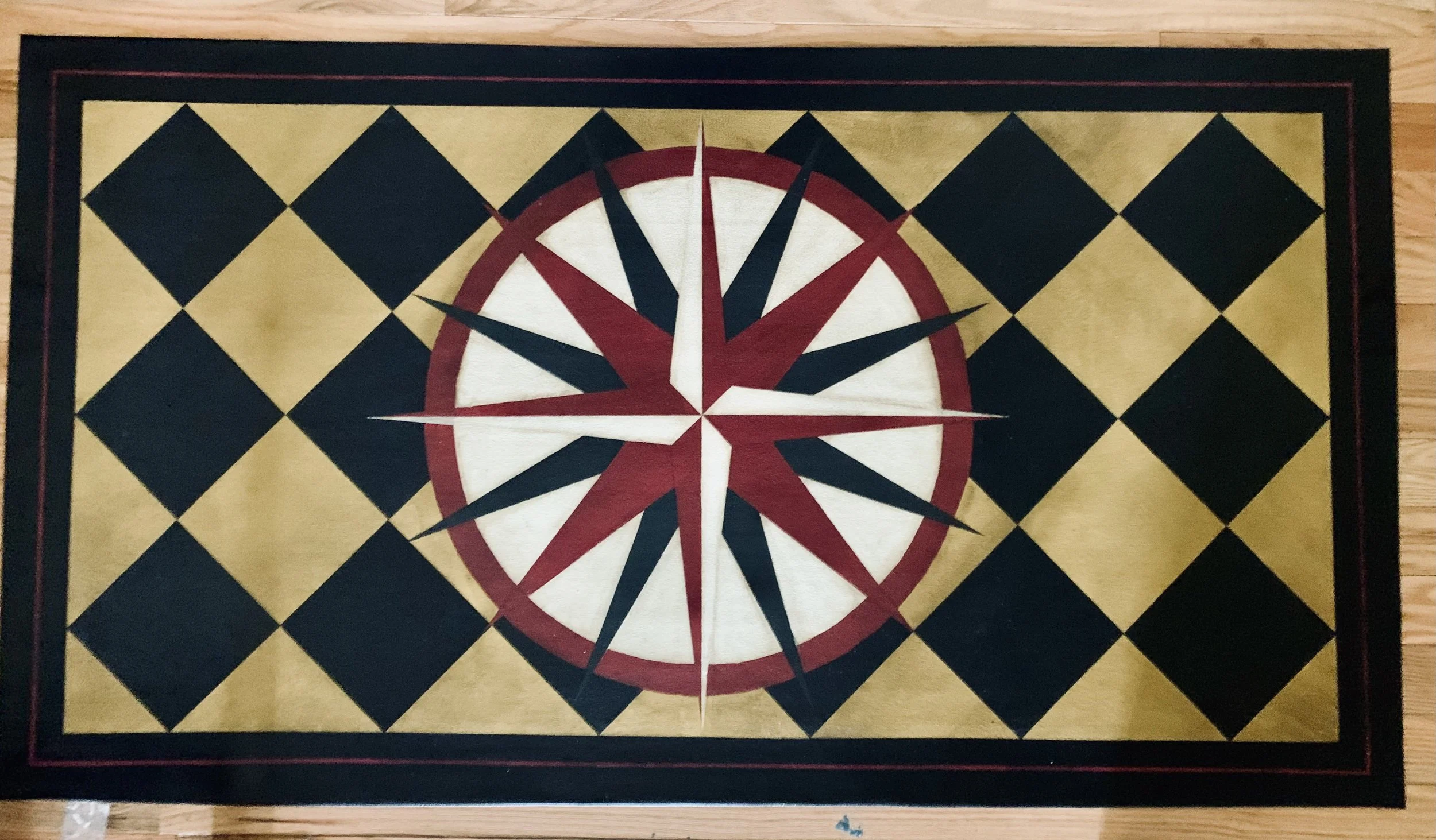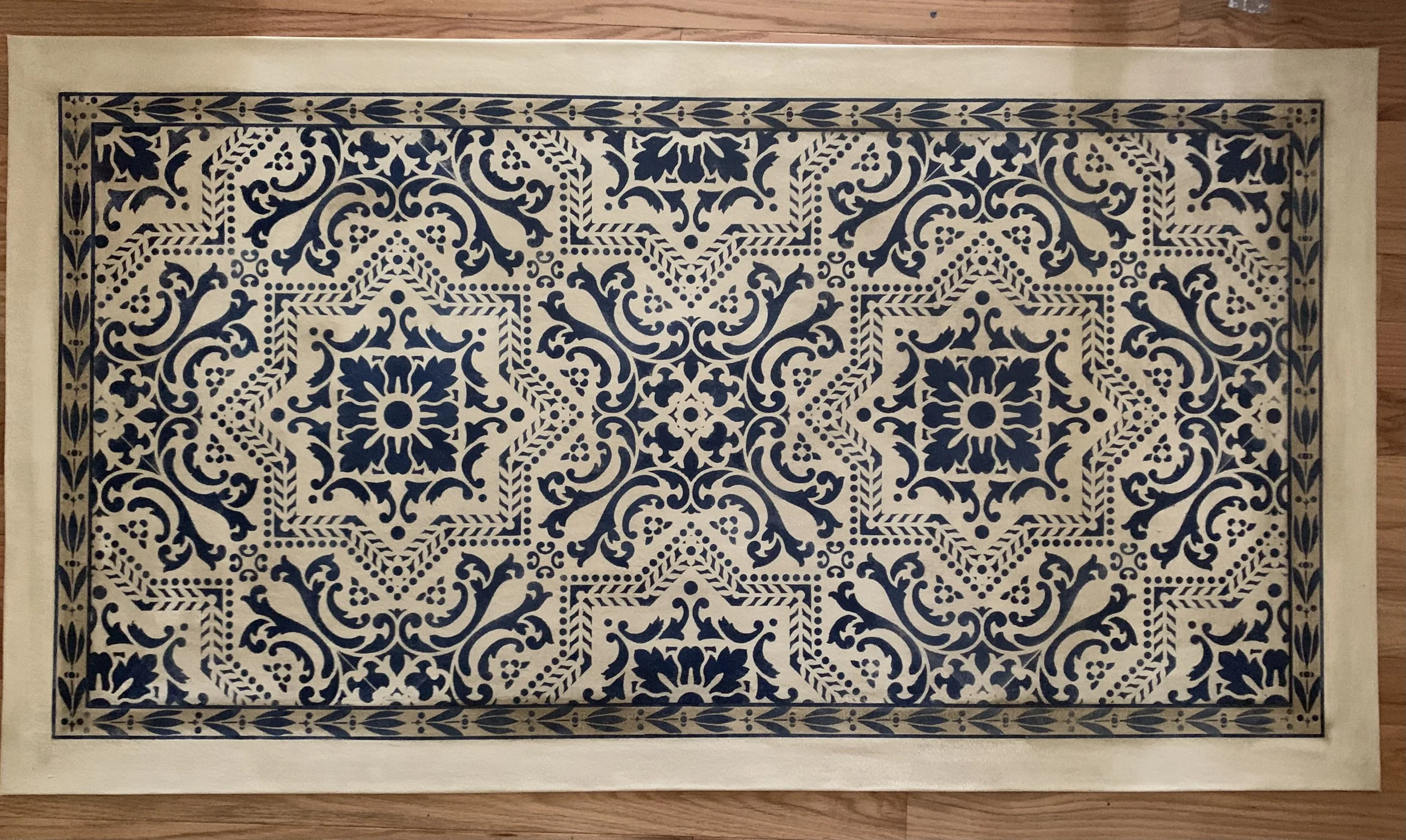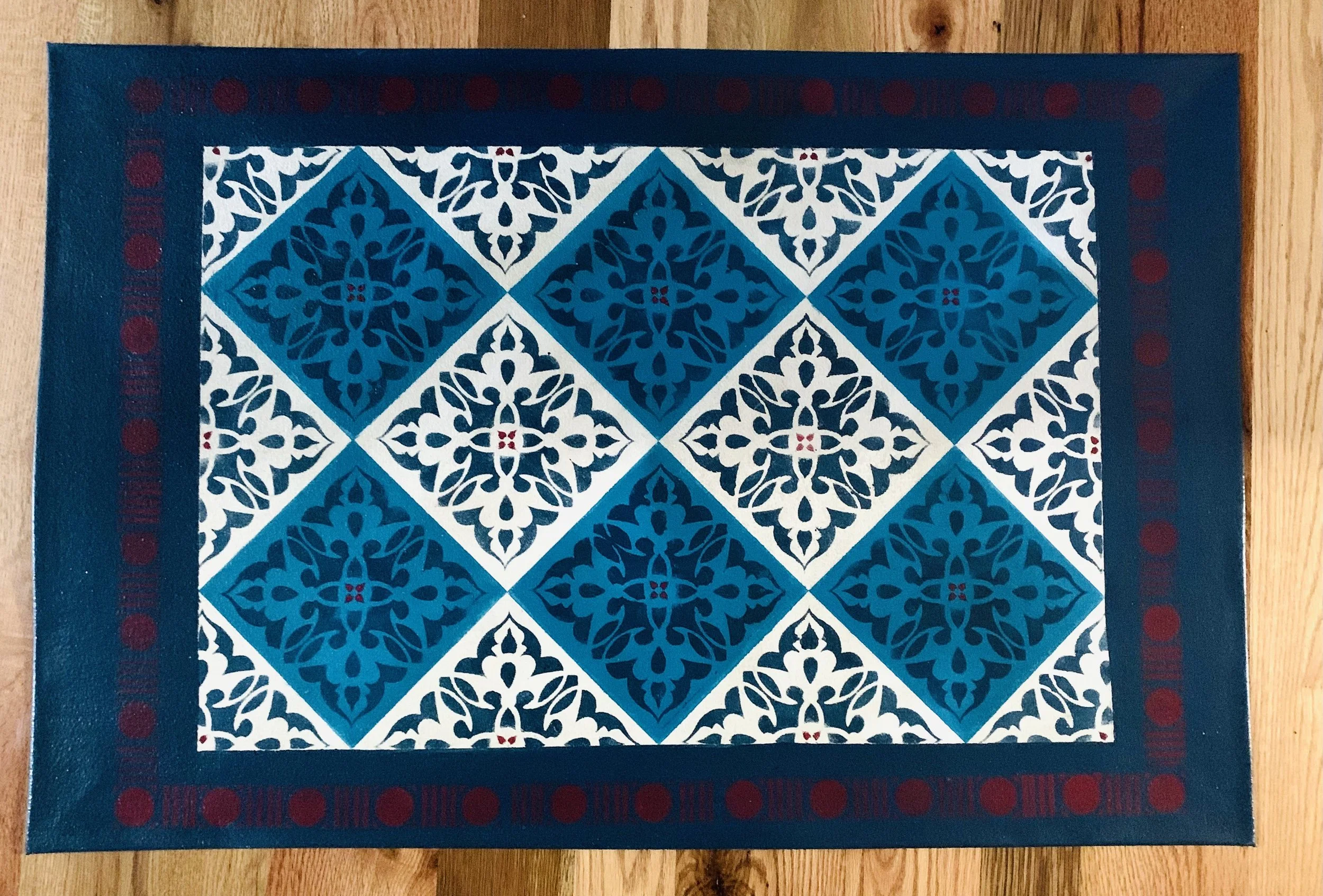 In-stock floorcloths are ready to ship in 2-3 days. Floorcloth items that are not in stock are custom made upon receipt of payment and can take 3-4 weeks completion, longer in humid weather due to curing time. Delivery time depends also on the size of your Floorcloth and amount of work I have at the time. No refunds available. Measure and choose your colors carefully.