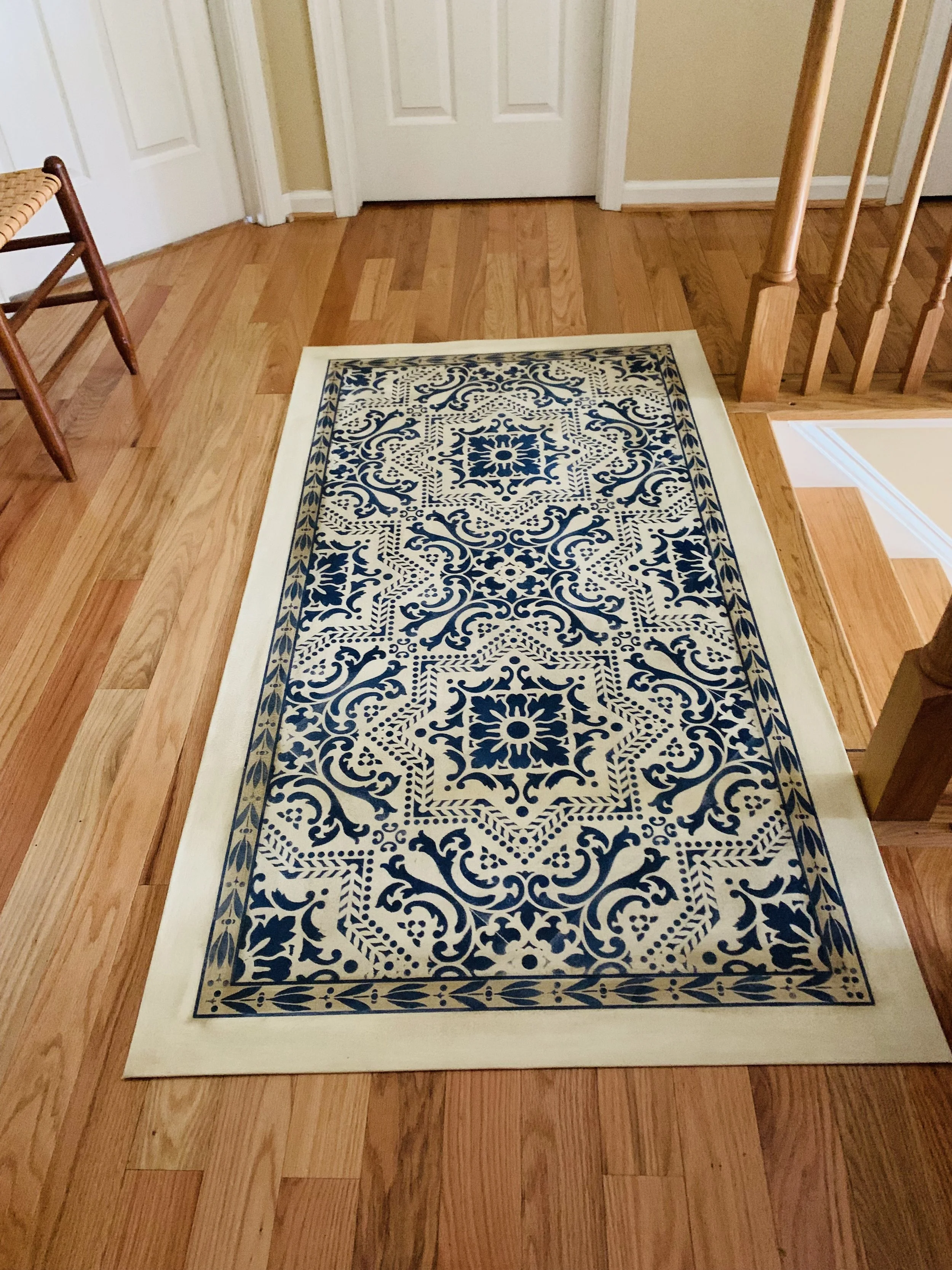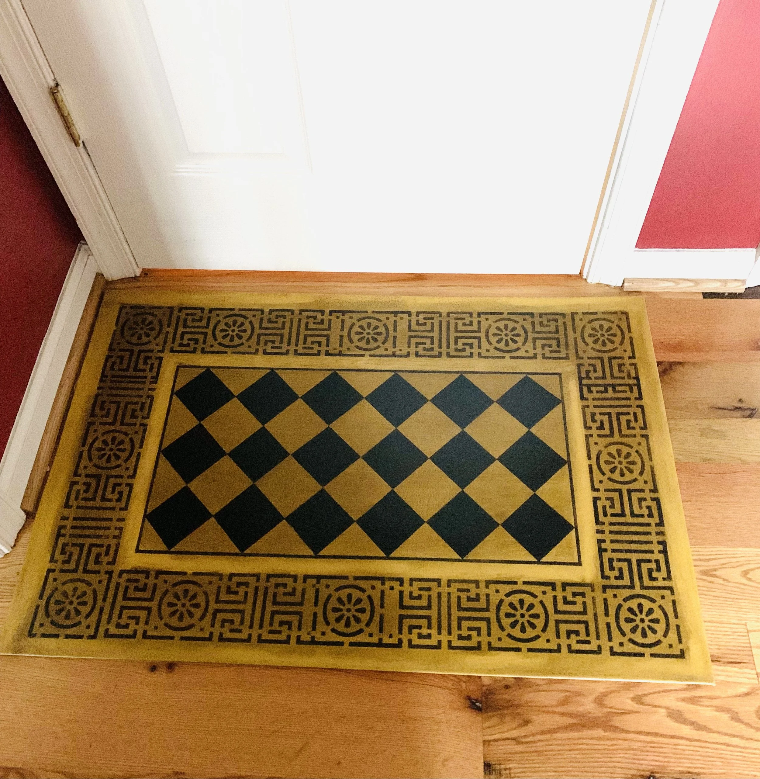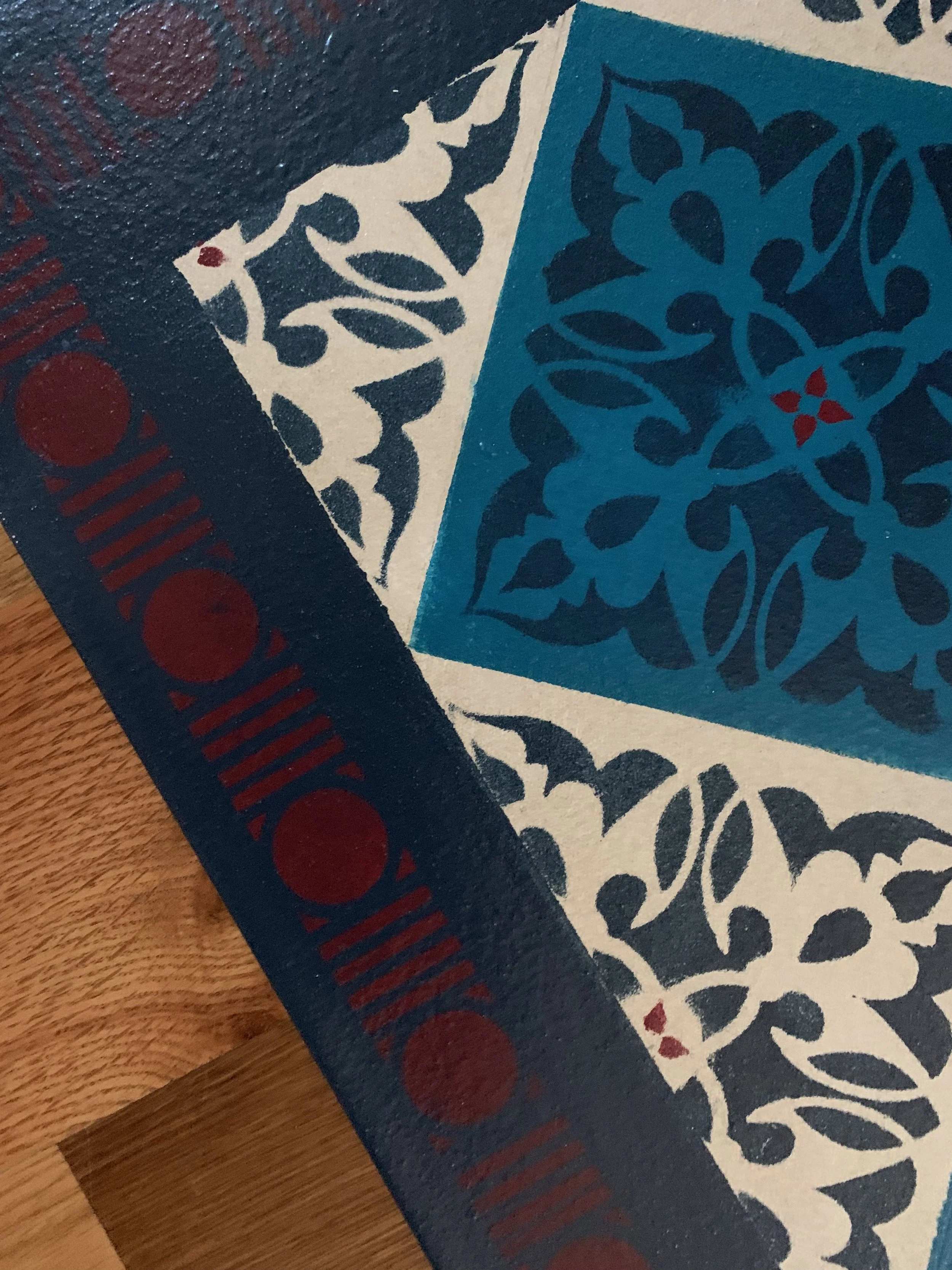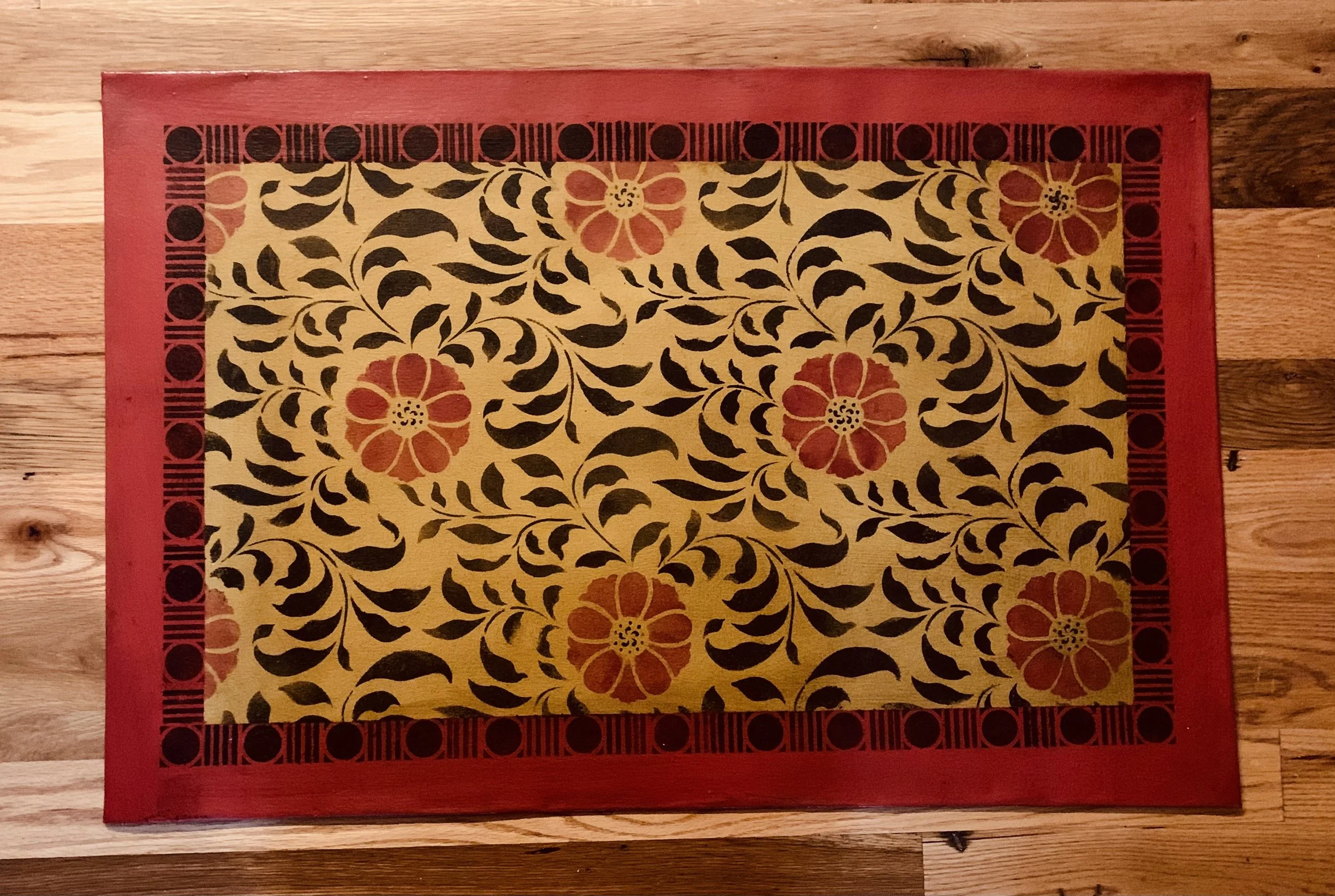 In-stock floorcloths are ready to ship in 2-3 days. Floorcloth items that are not in stock are custom made upon receipt of payment and can take 3-4 weeks completion, longer in humid weather due to curing time. Delivery time depends also on the size of your Floorcloth and amount of work I have at the time. No refunds available. Measure and choose your colors carefully.