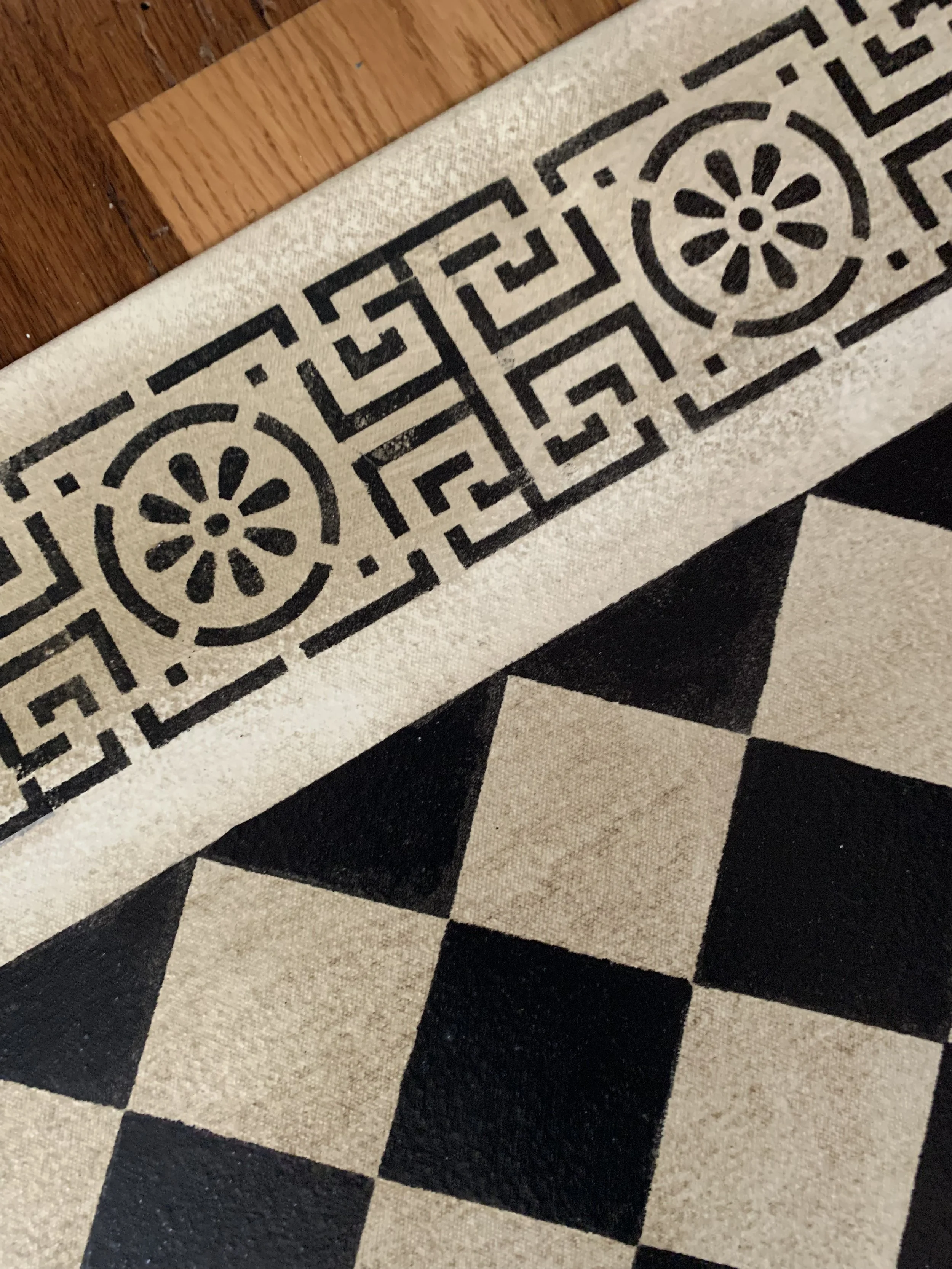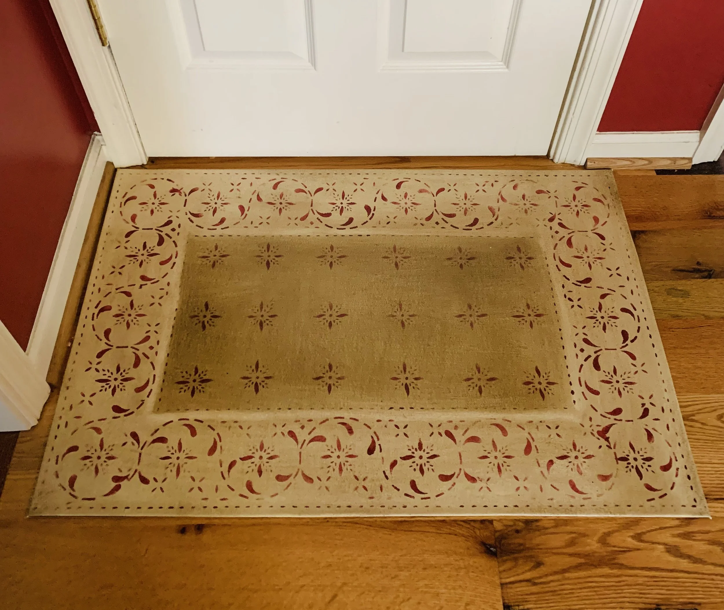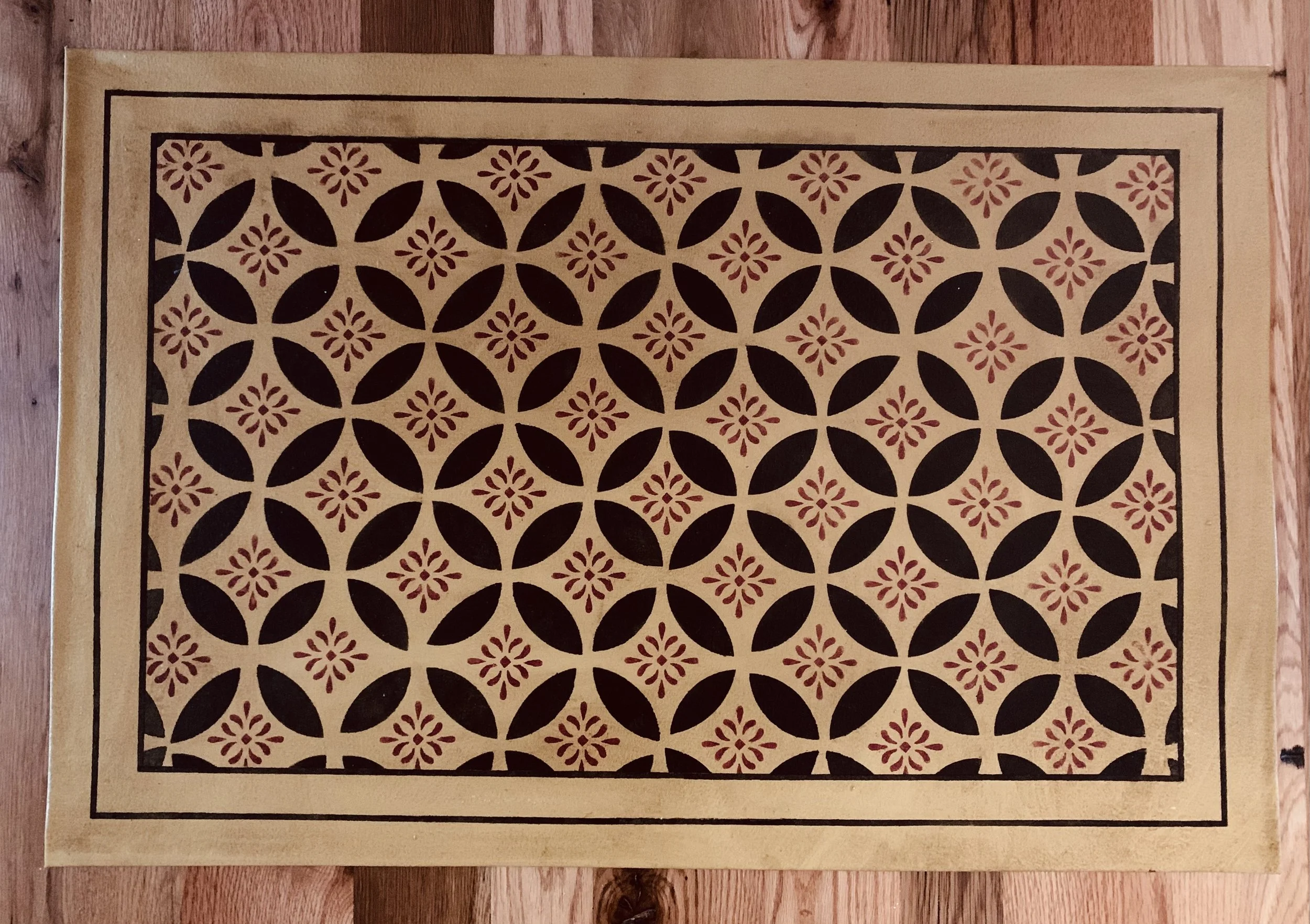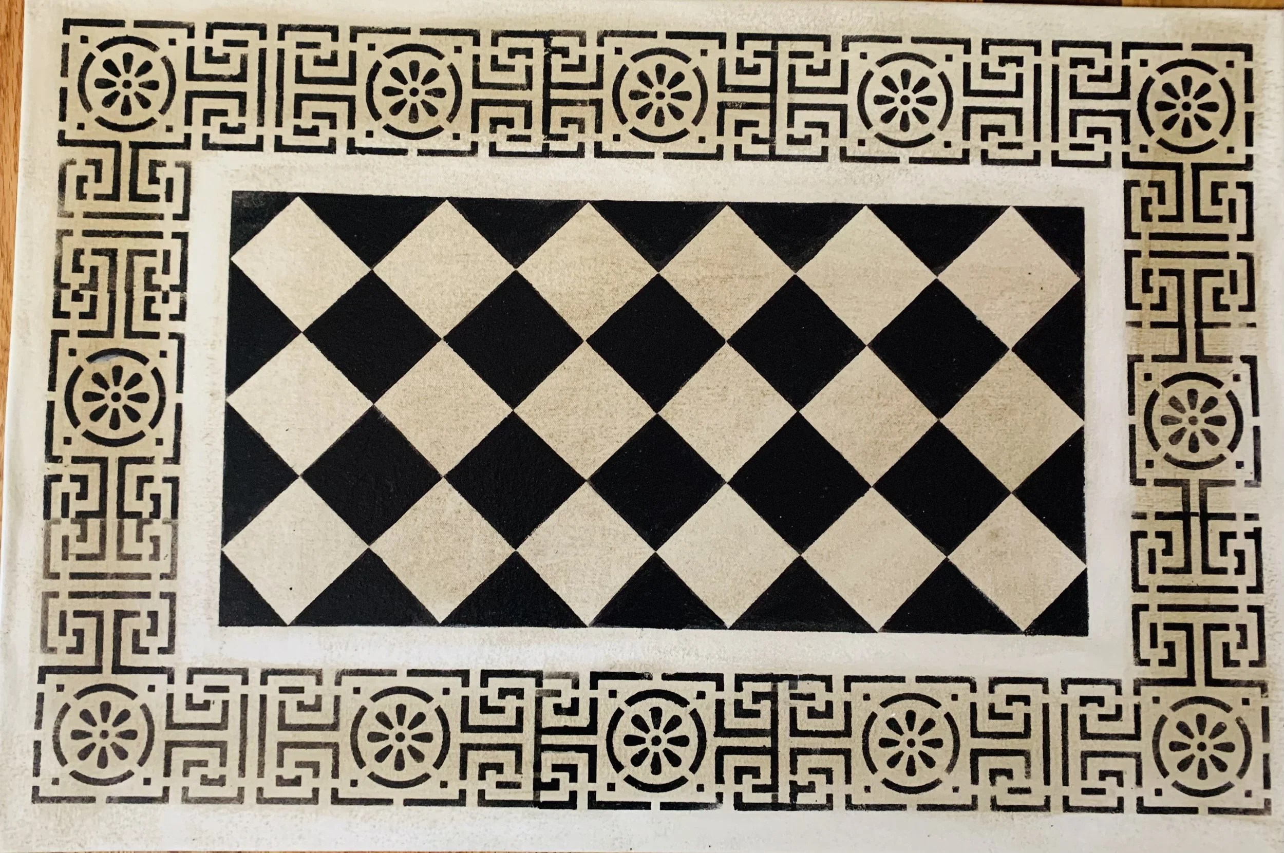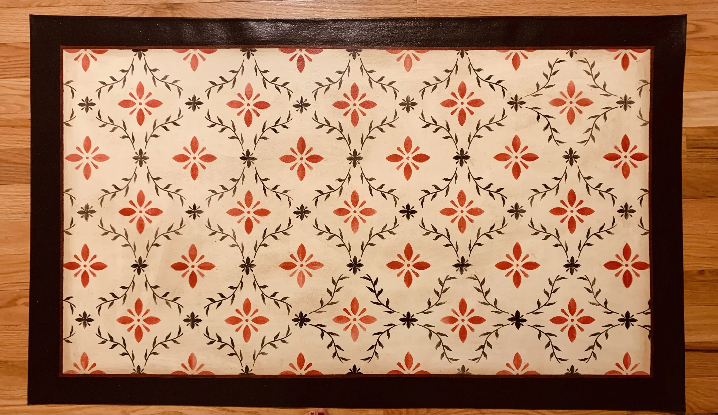 In-stock floorcloths are ready to ship in 2-3 days. Floorcloth items that are not in stock are custom made upon receipt of payment and can take 3-4 weeks completion, longer in humid weather due to curing time. Delivery time depends also on the size of your Floorcloth and amount of work I have at the time. No refunds available. Measure and choose your colors carefully.