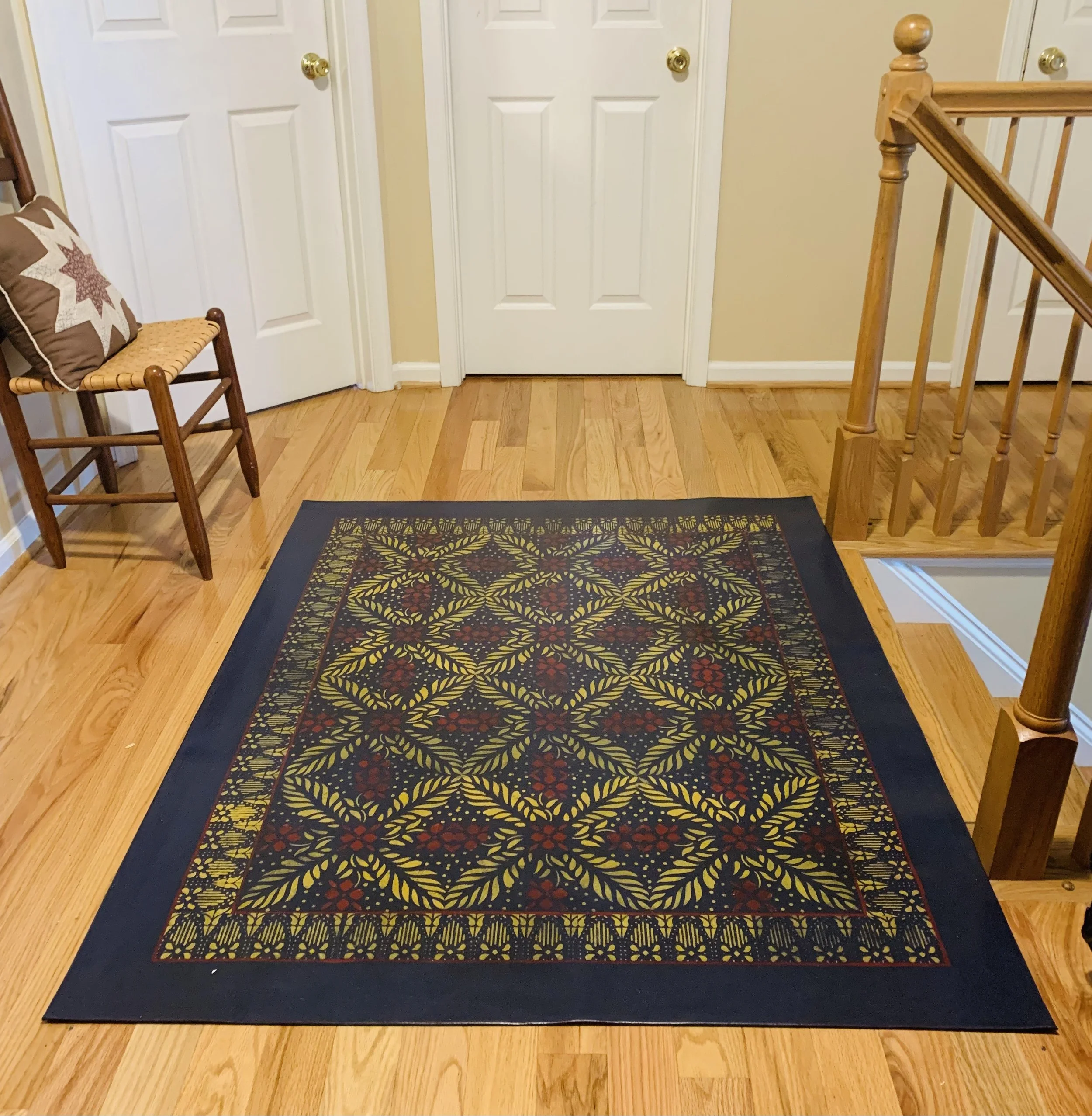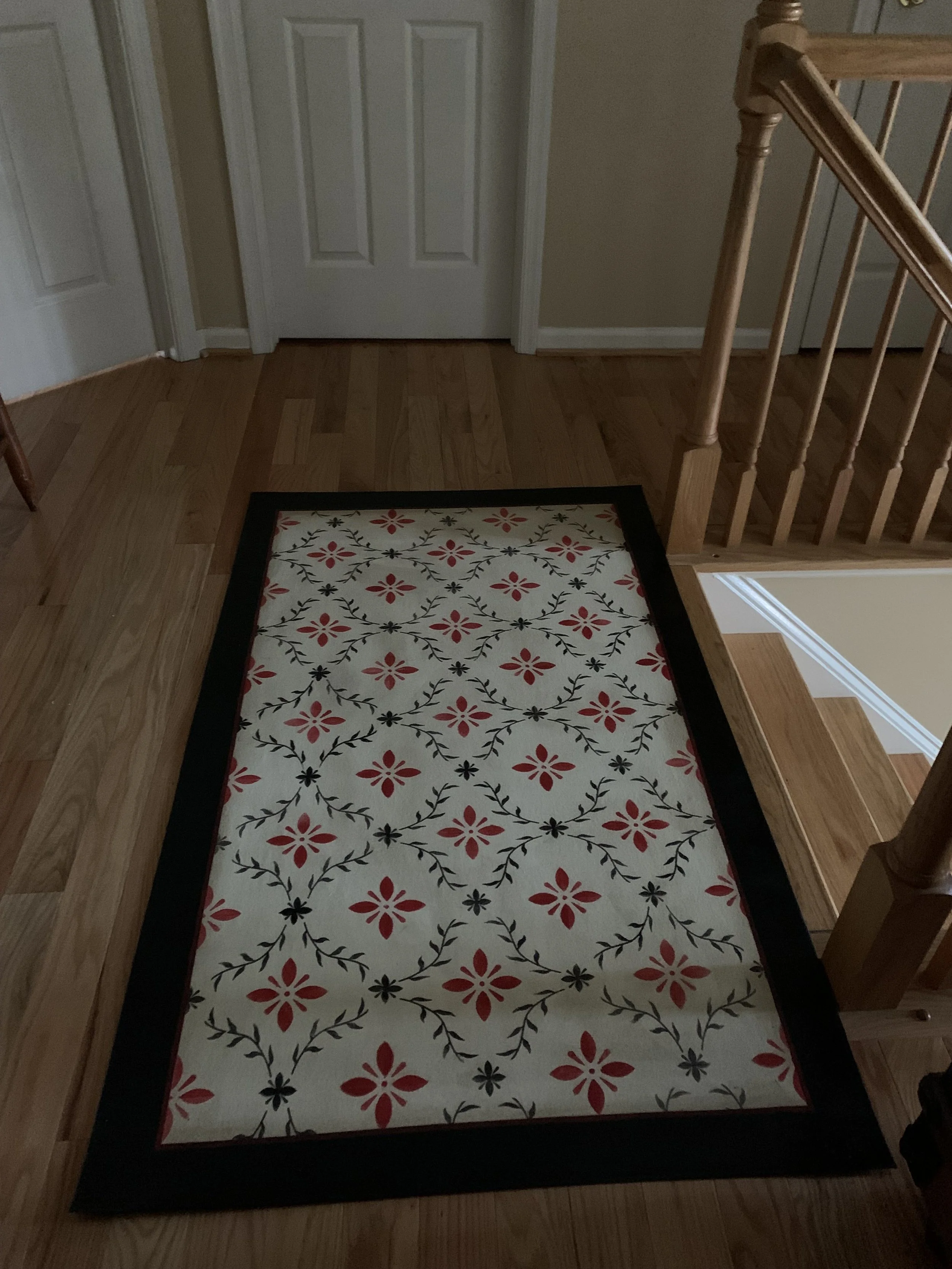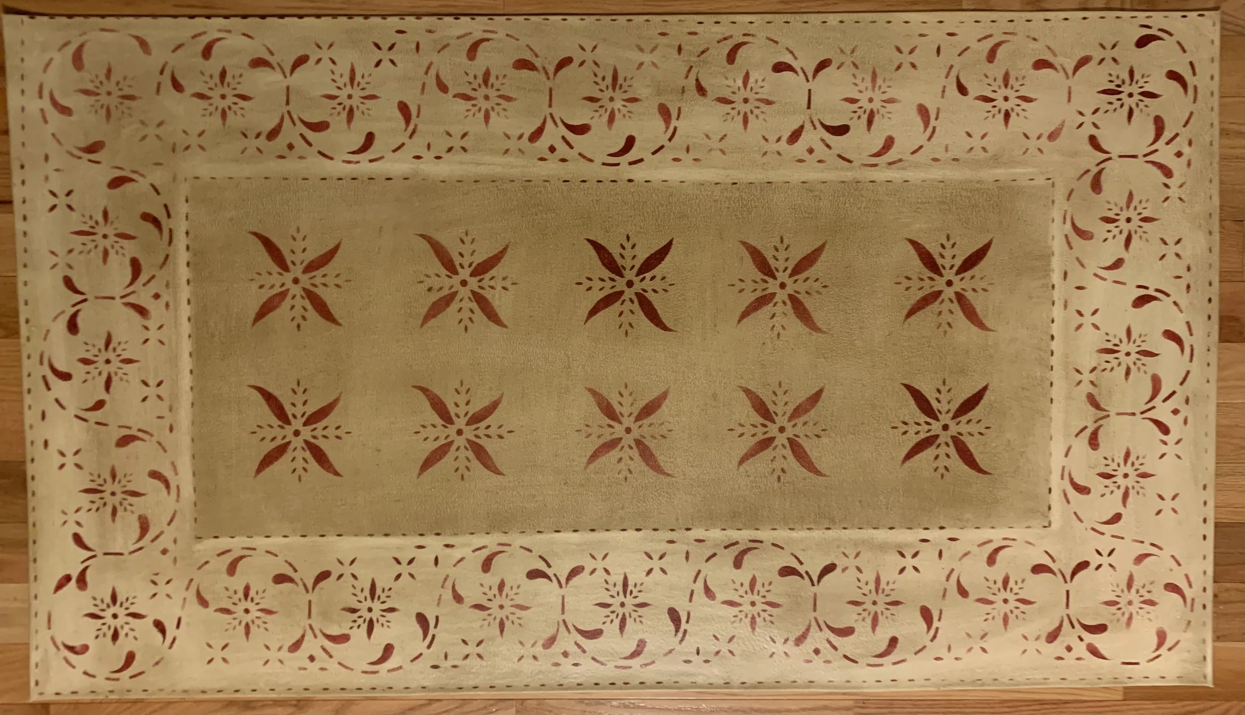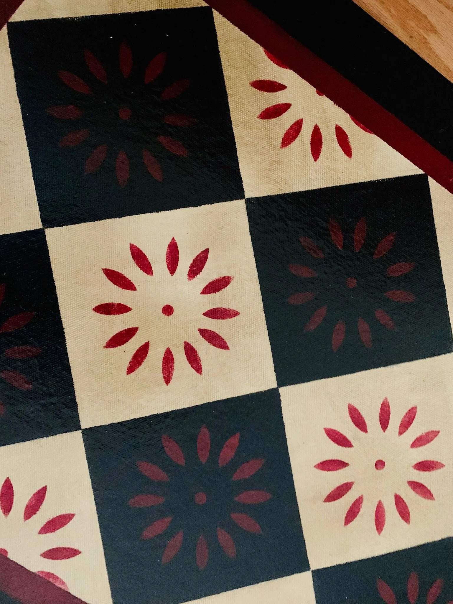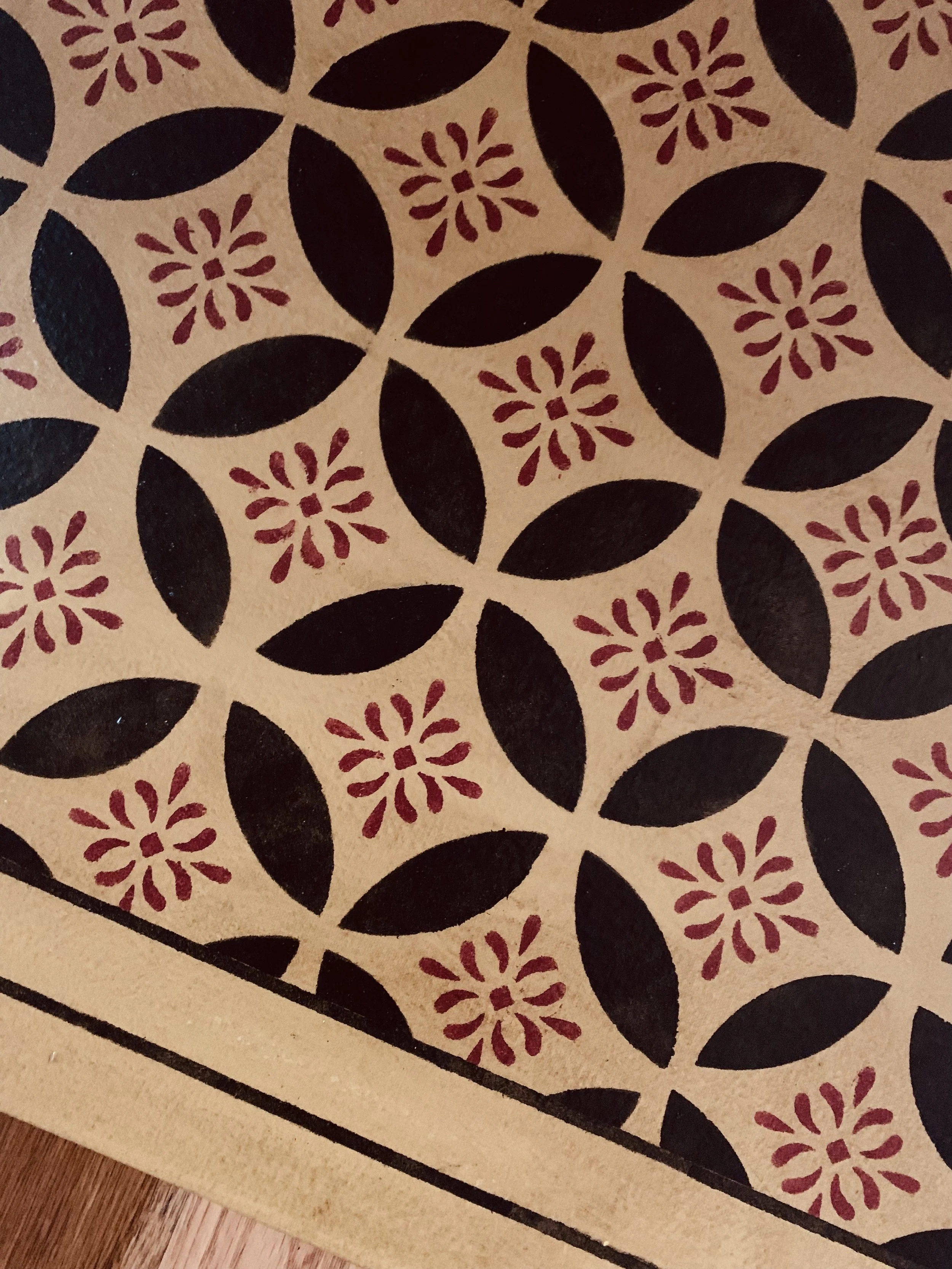 In-stock floorcloths are ready to ship in 2-3 days. Floorcloth items that are not in stock are custom made upon receipt of payment and can take 3-4 weeks completion, longer in humid weather due to curing time. Delivery time depends also on the size of your Floorcloth and amount of work I have at the time. No refunds available. Measure and choose your colors carefully.
