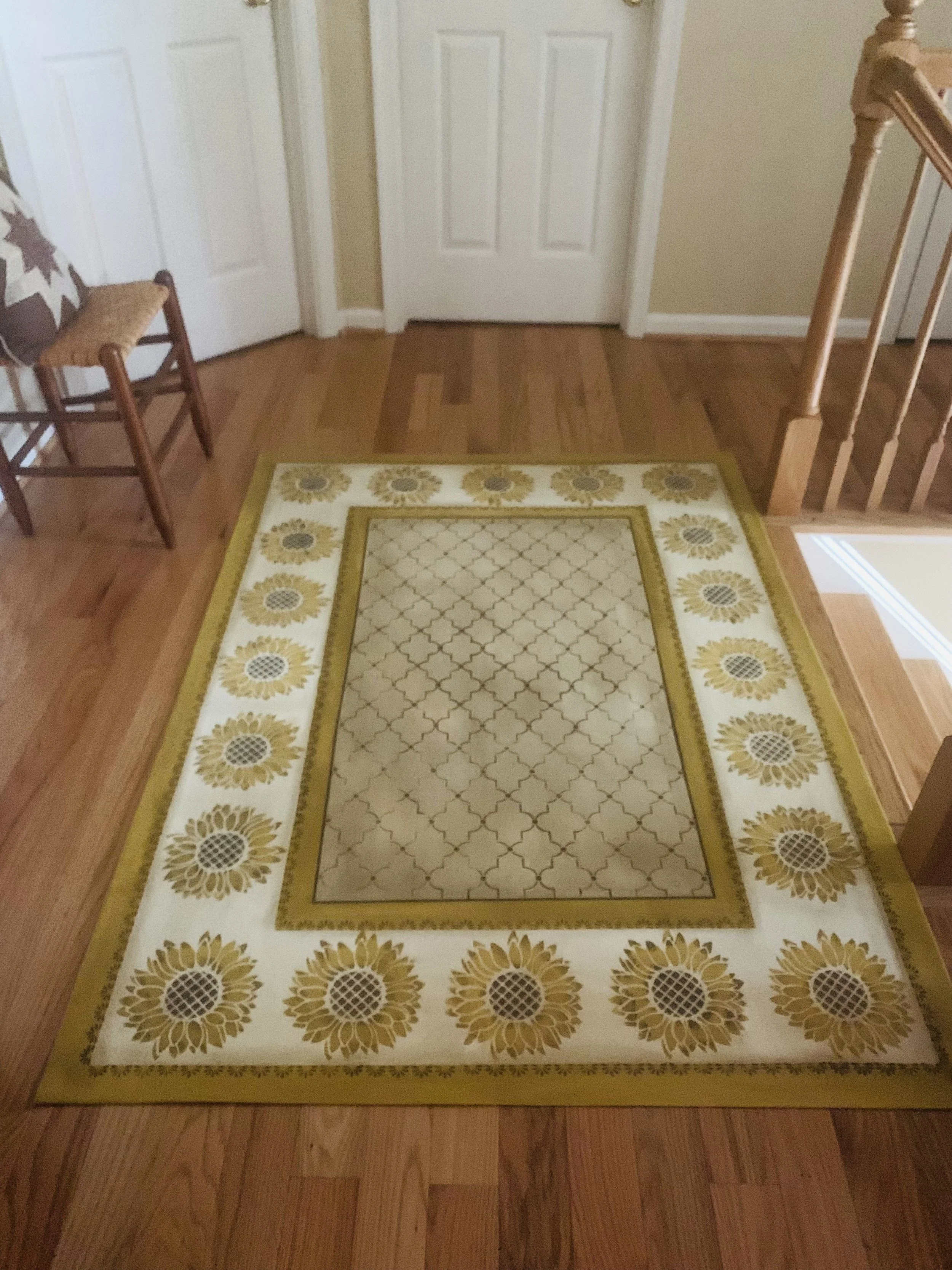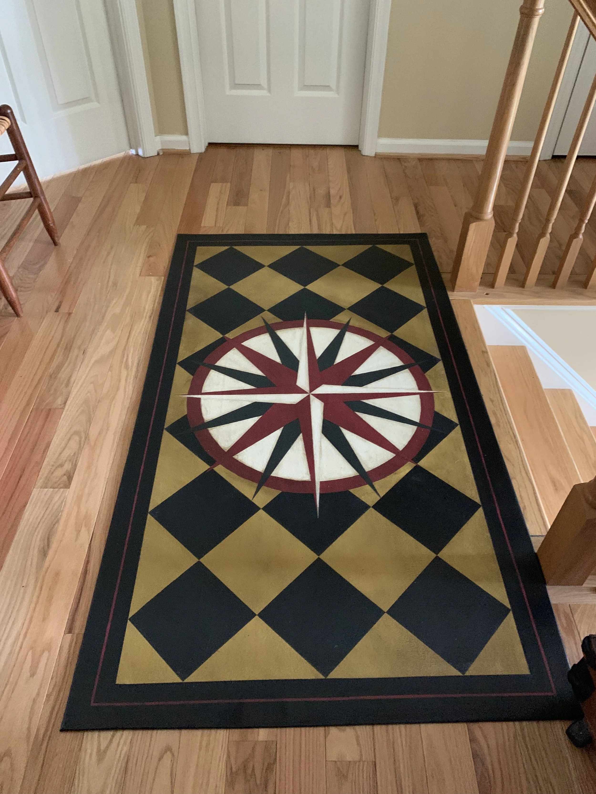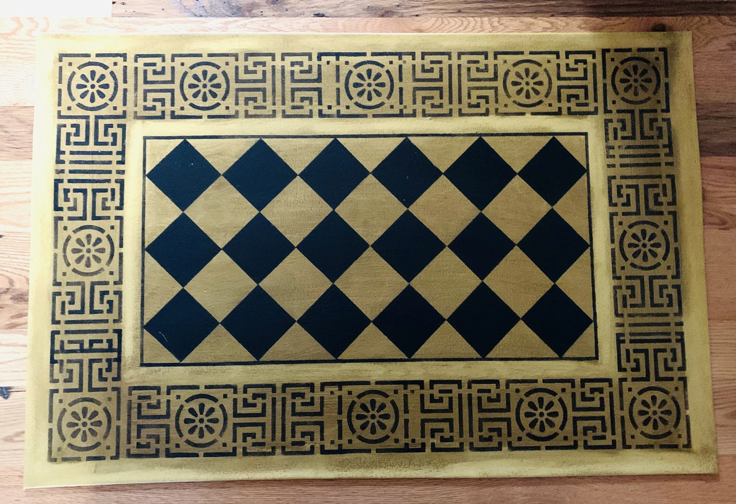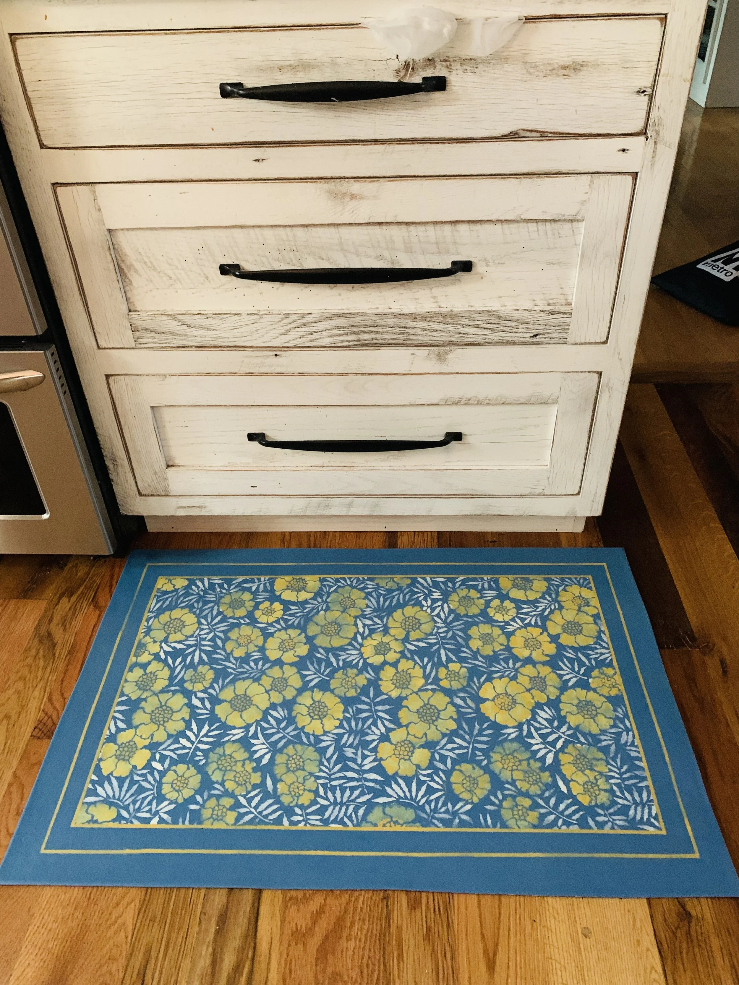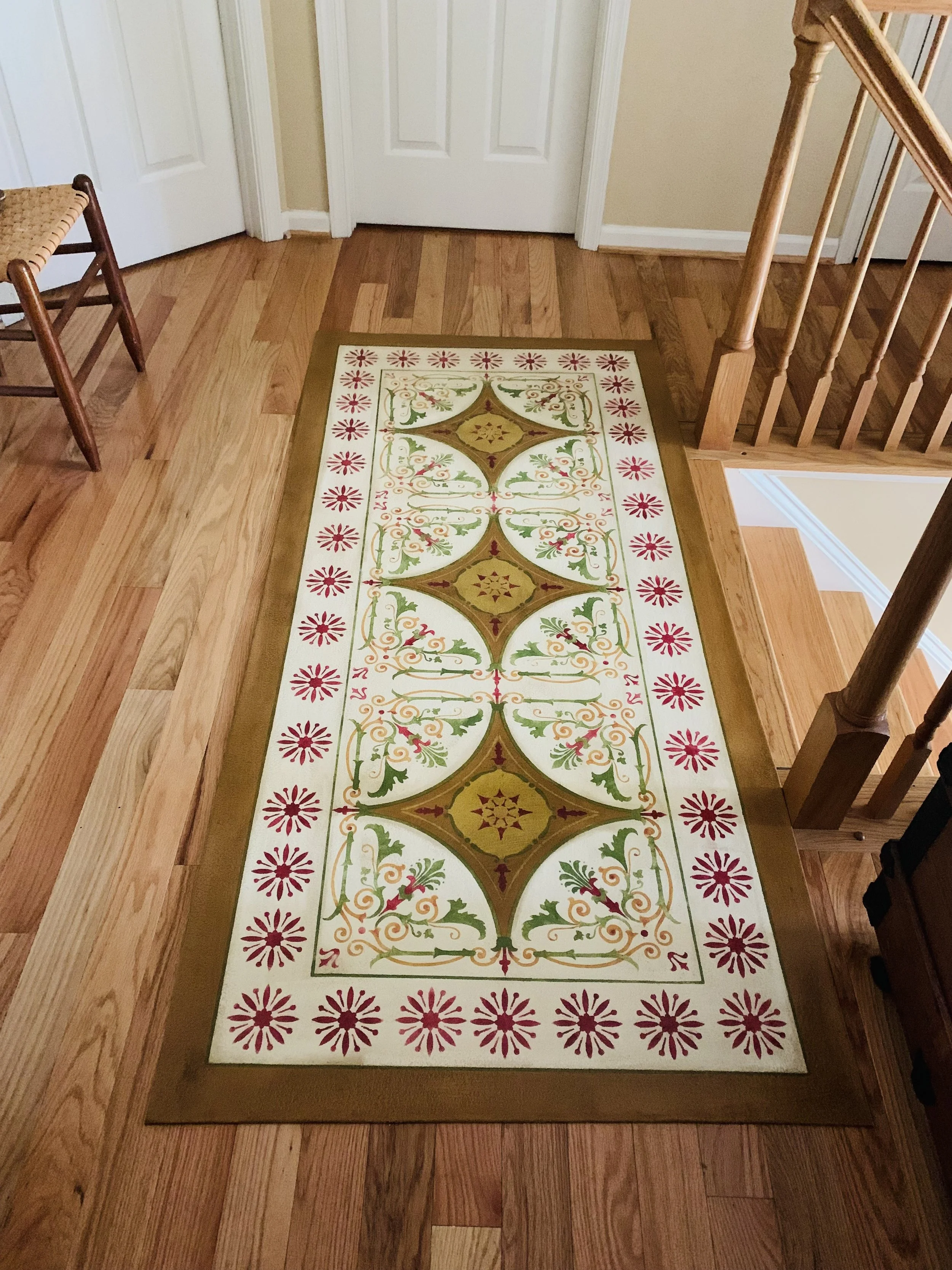 In-stock floorcloths are ready to ship in 2-3 days. Floorcloth items that are not in stock are custom made upon receipt of payment and can take 3-4 weeks completion, longer in humid weather due to curing time. Delivery time depends also on the size of your Floorcloth and amount of work I have at the time. No refunds available. Measure and choose your colors carefully.