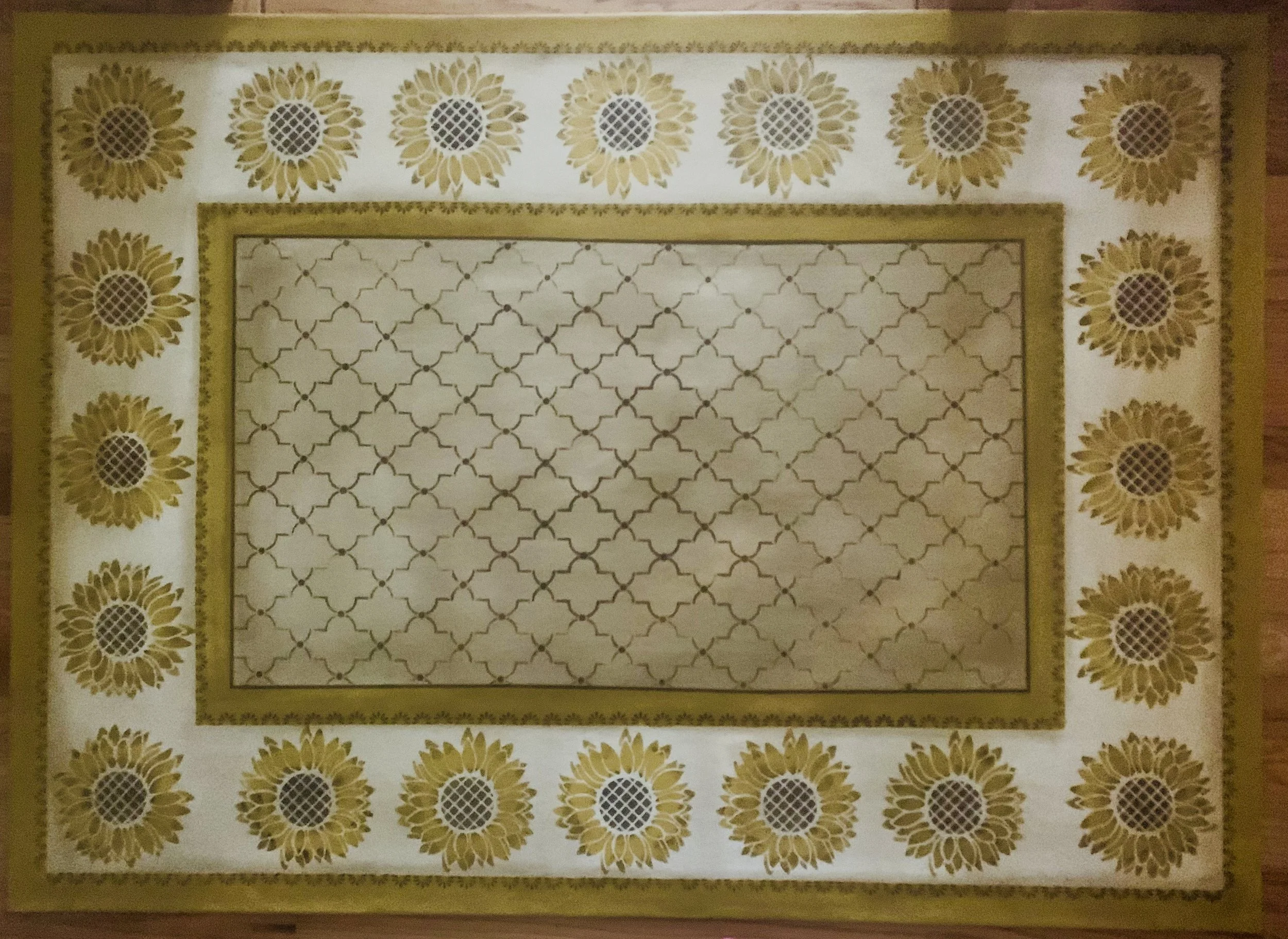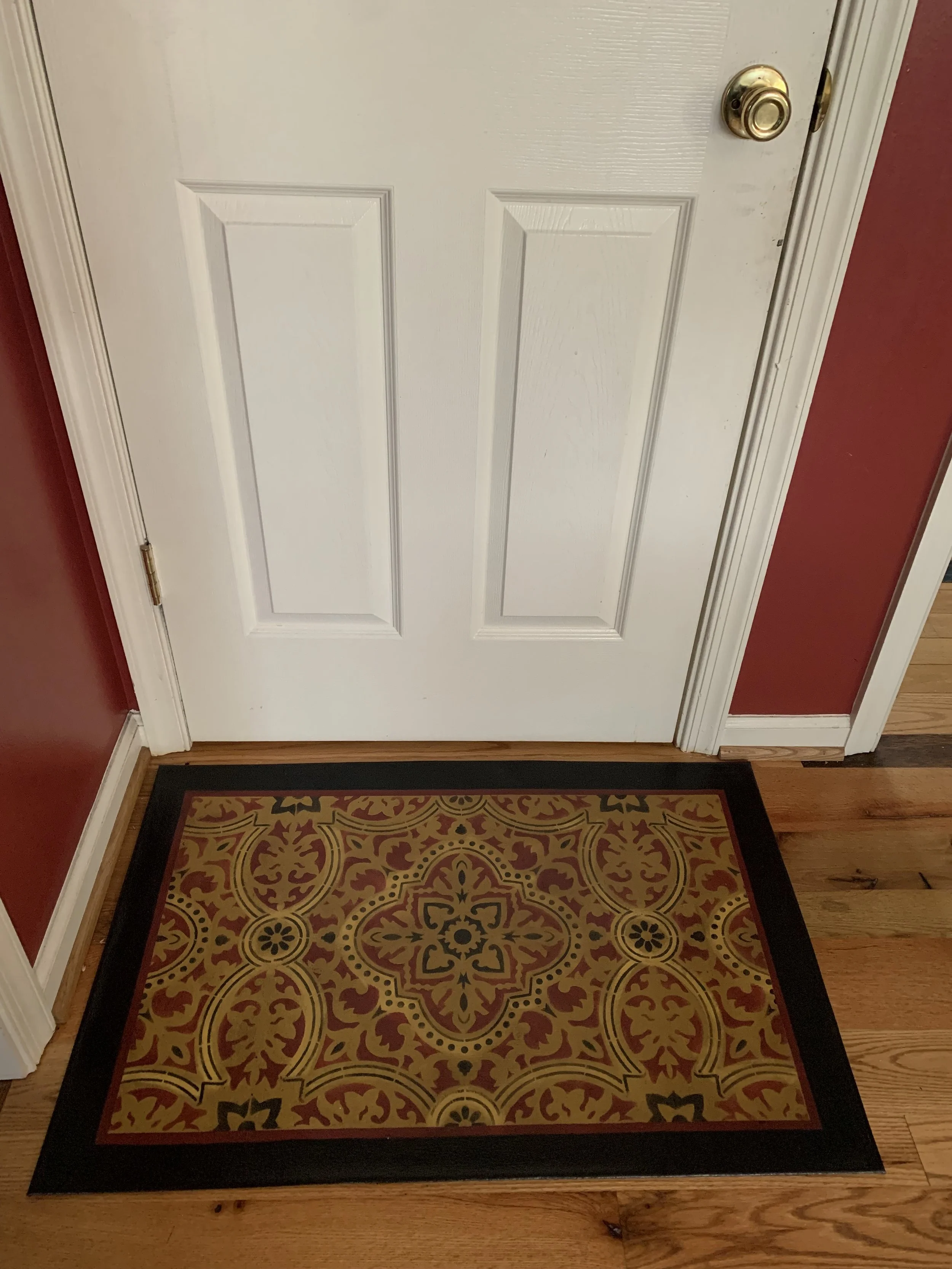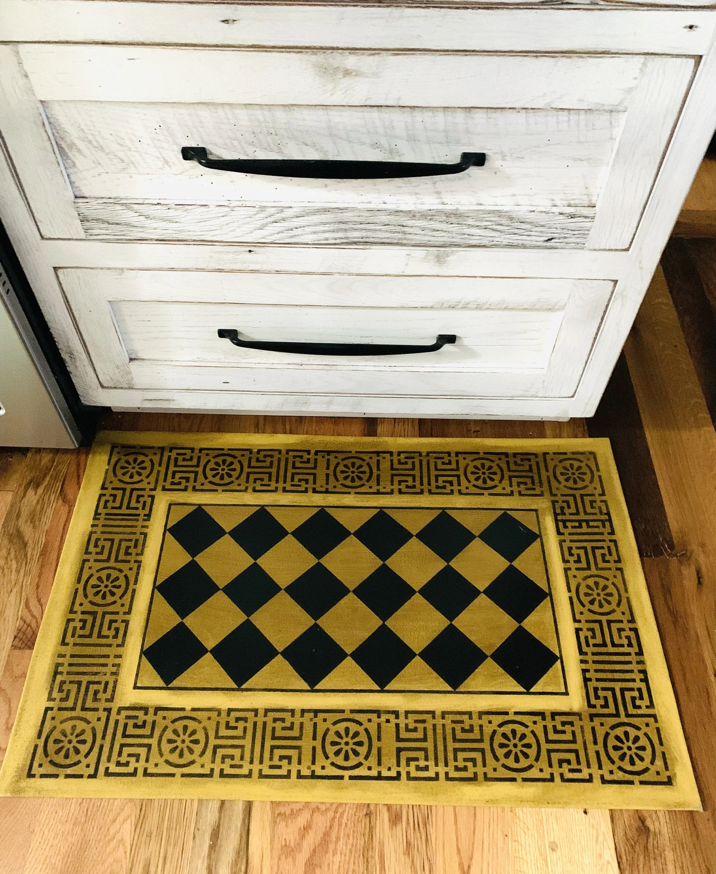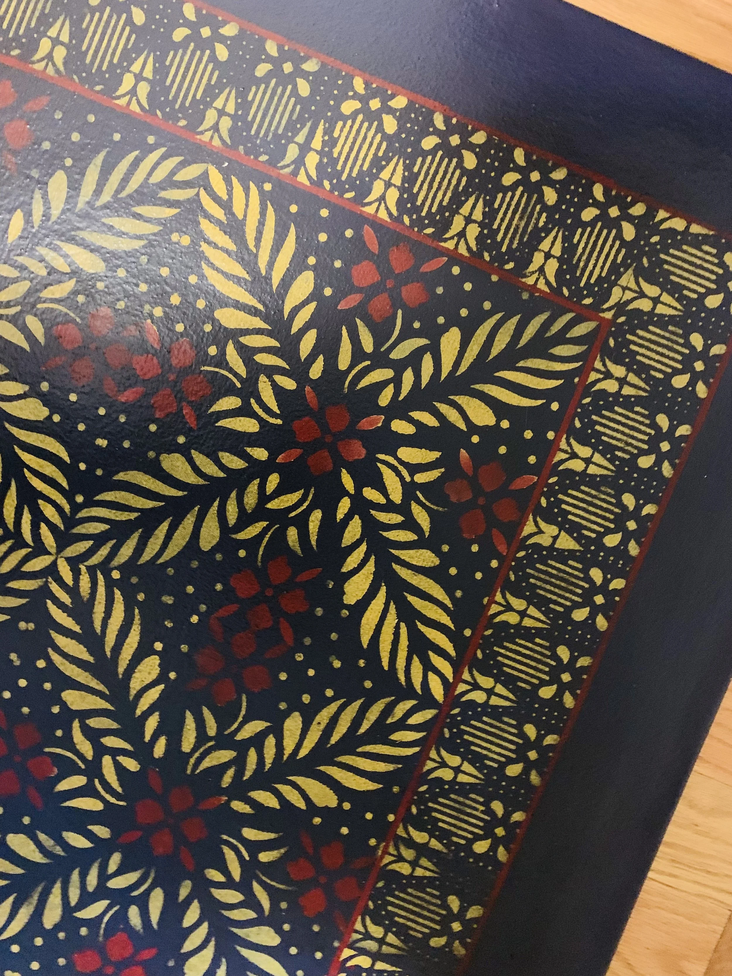 In-stock floorcloths are ready to ship in 2-3 days. Floorcloth items that are not in stock are custom made upon receipt of payment and can take 3-4 weeks completion, longer in humid weather due to curing time. Delivery time depends also on the size of your Floorcloth and amount of work I have at the time. No refunds available. Measure and choose your colors carefully.