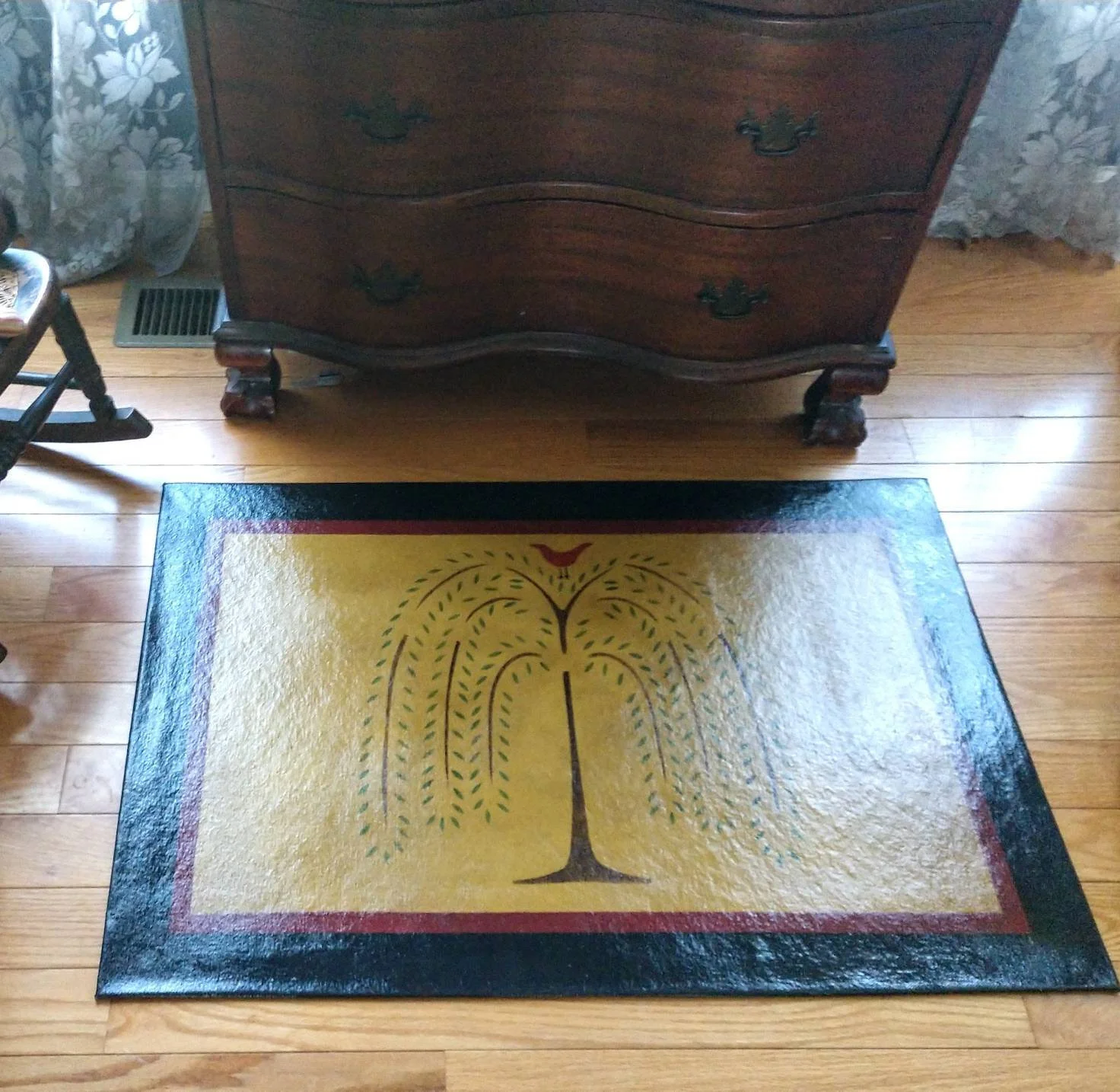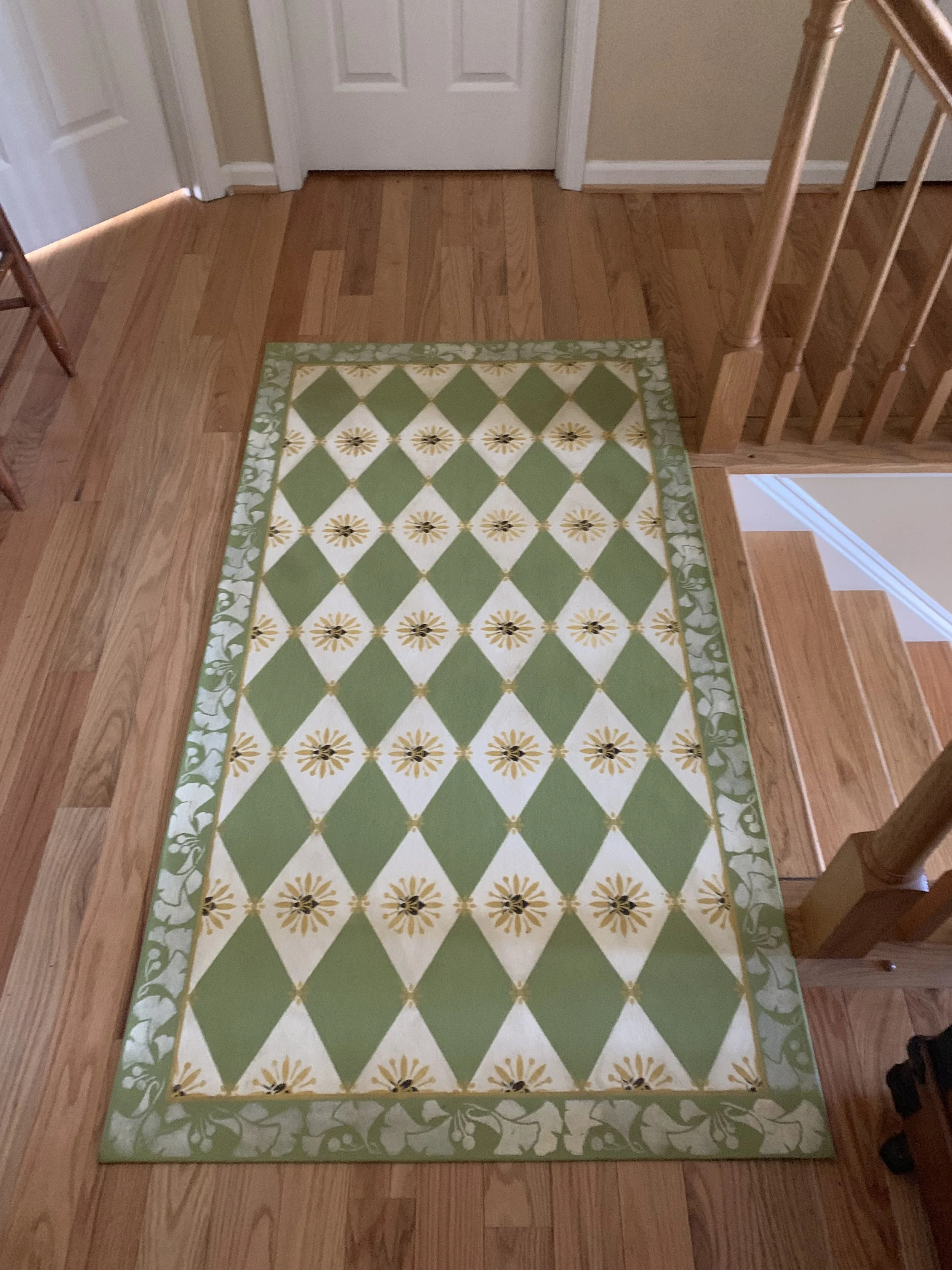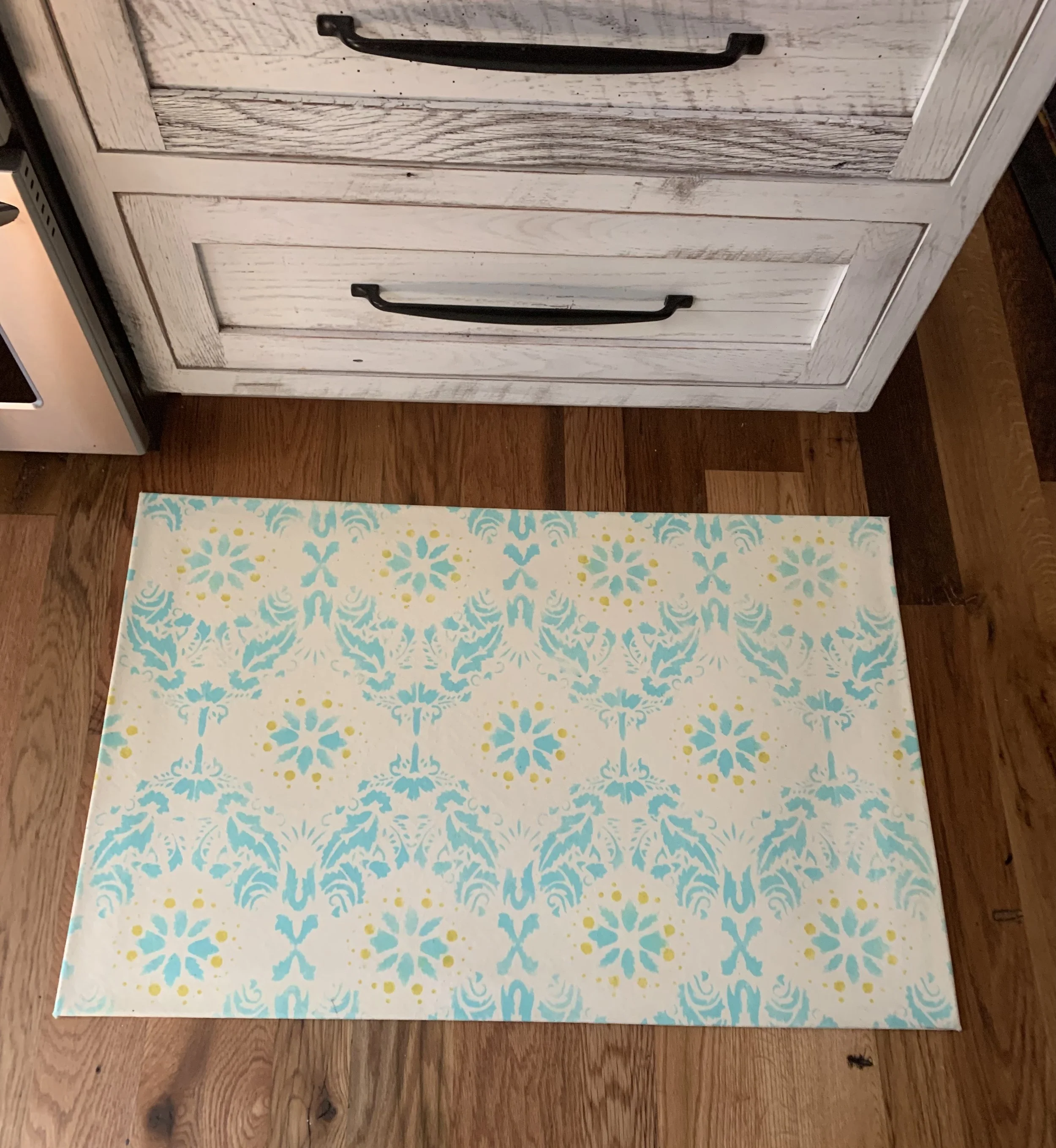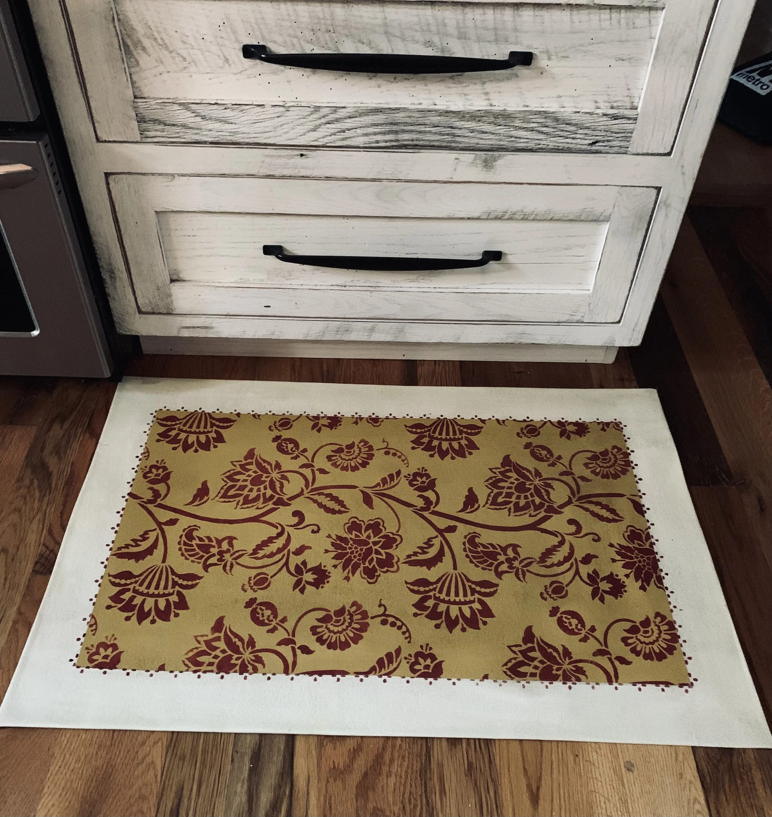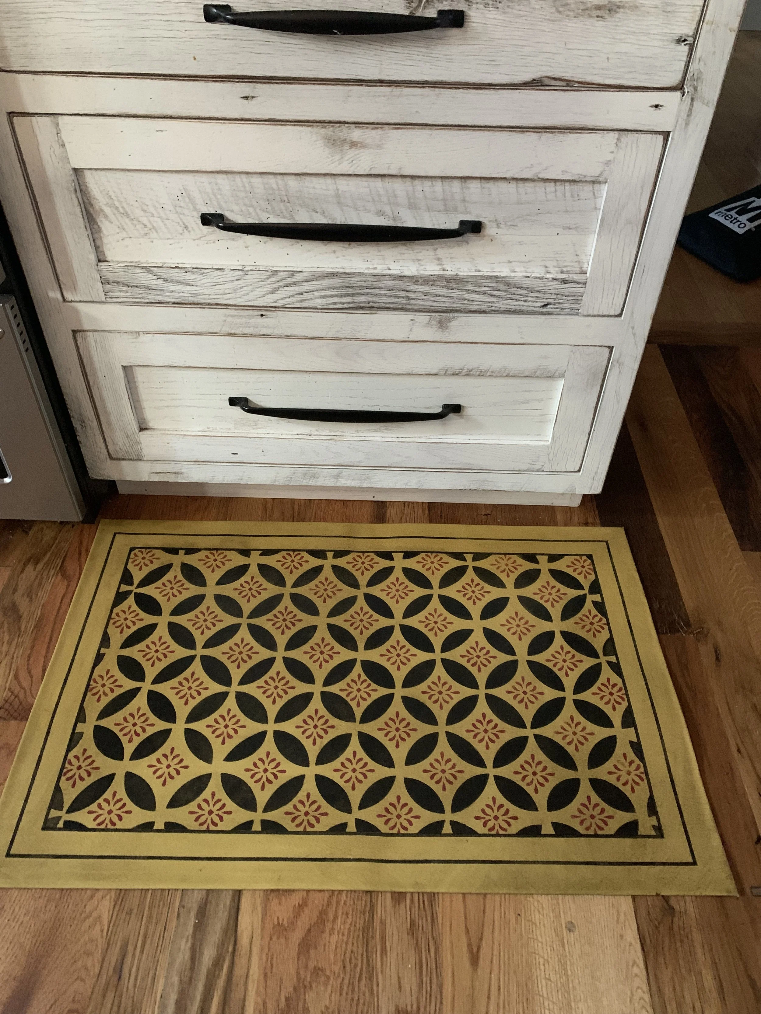 In-stock floorcloths are ready to ship in 2-3 days. Floorcloth items that are not in stock are custom made upon receipt of payment and can take 3-4 weeks completion, longer in humid weather due to curing time. Delivery time depends also on the size of your Floorcloth and amount of work I have at the time. No refunds available. Measure and choose your colors carefully.
