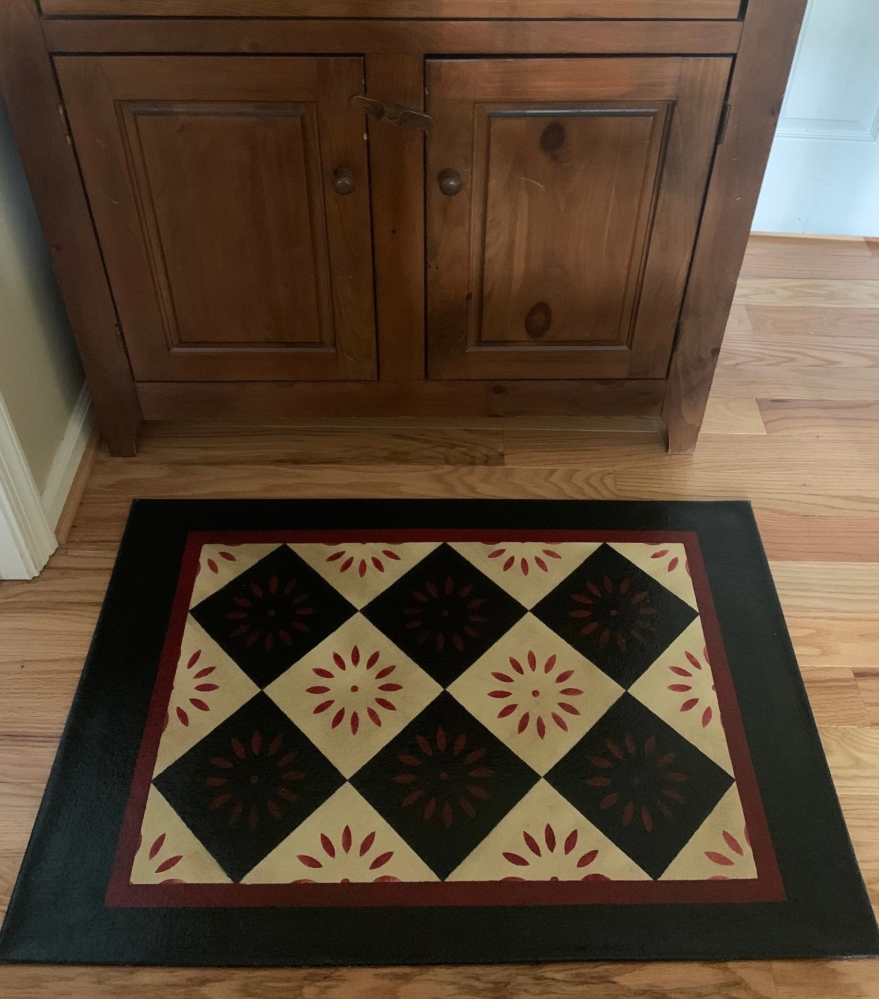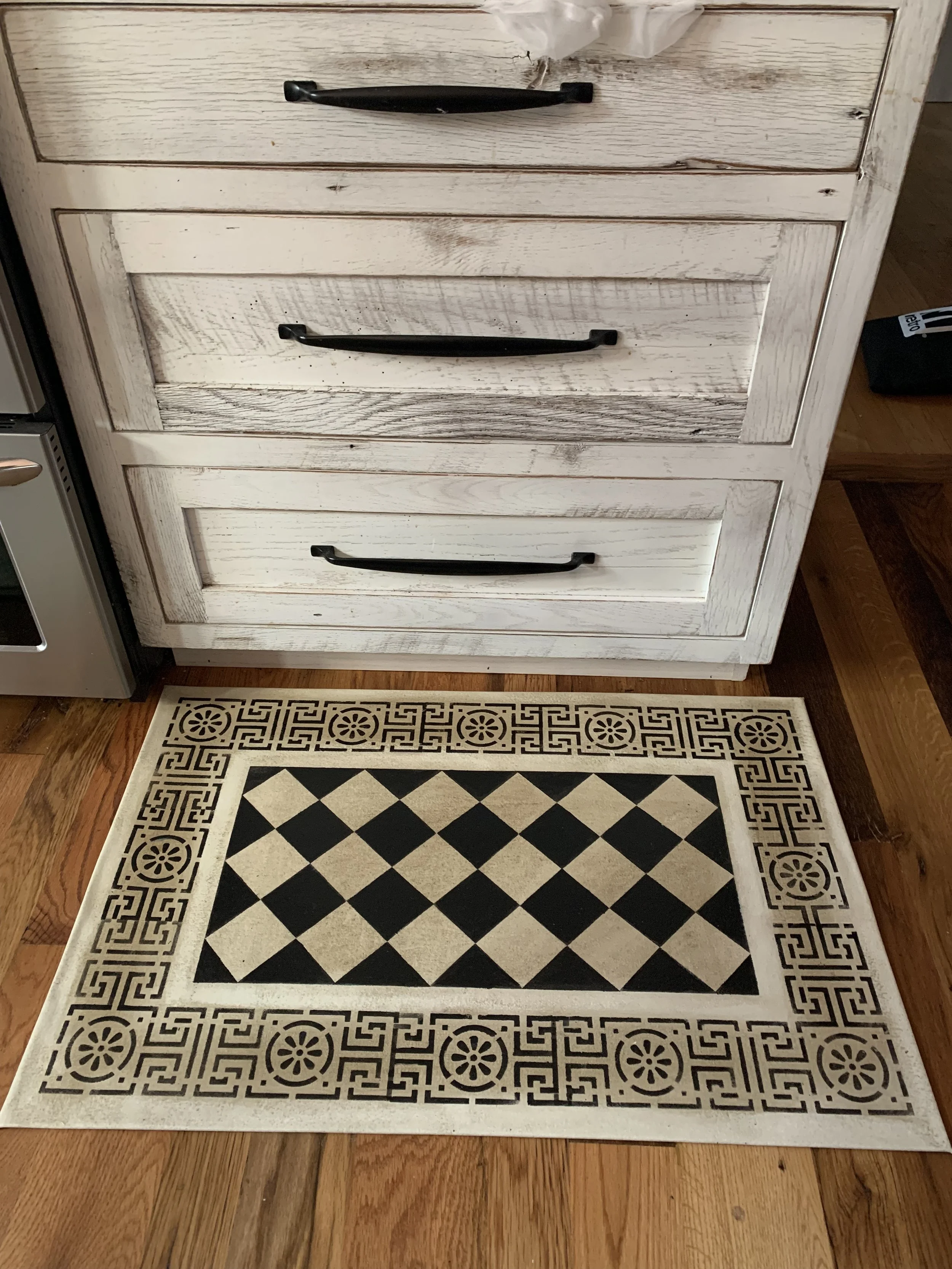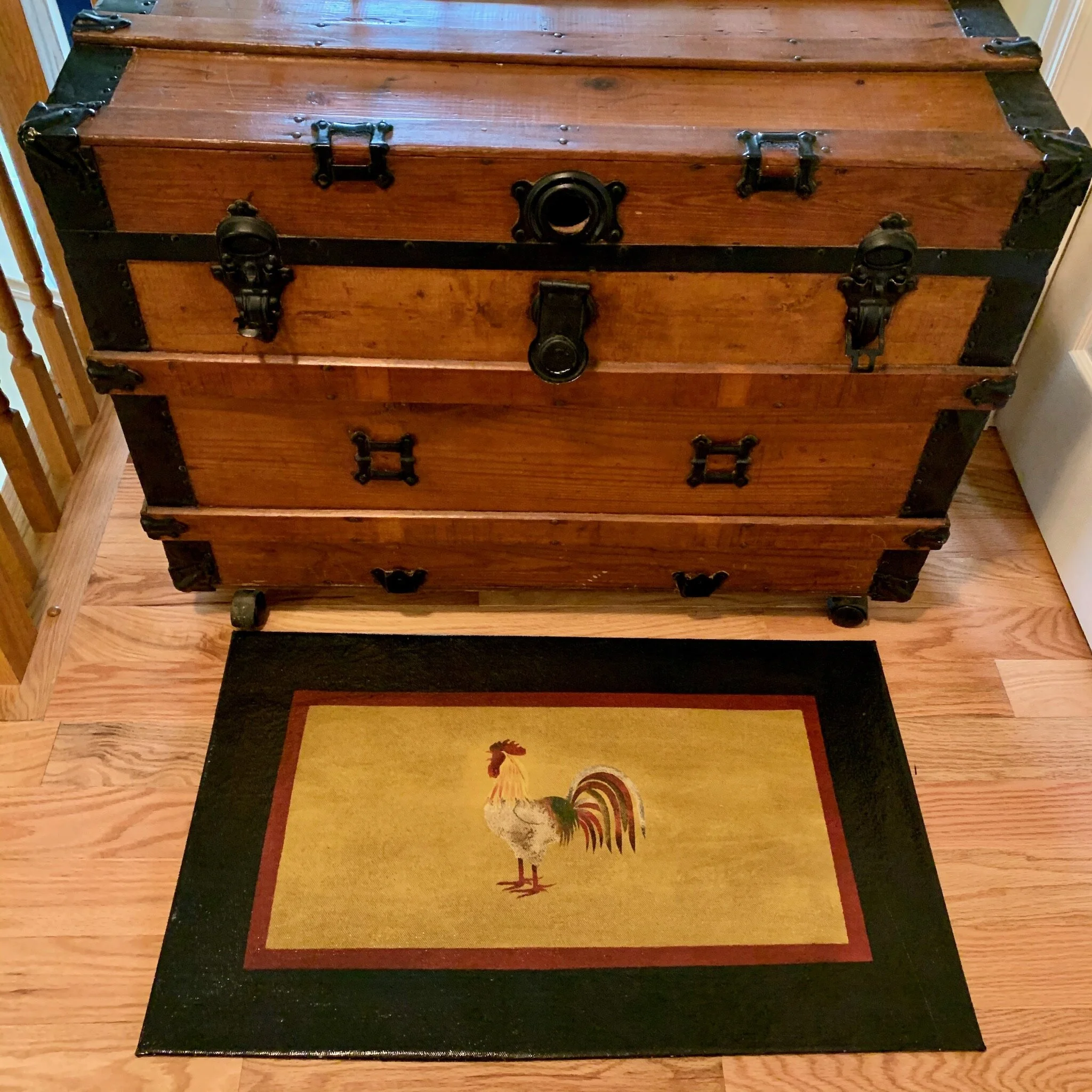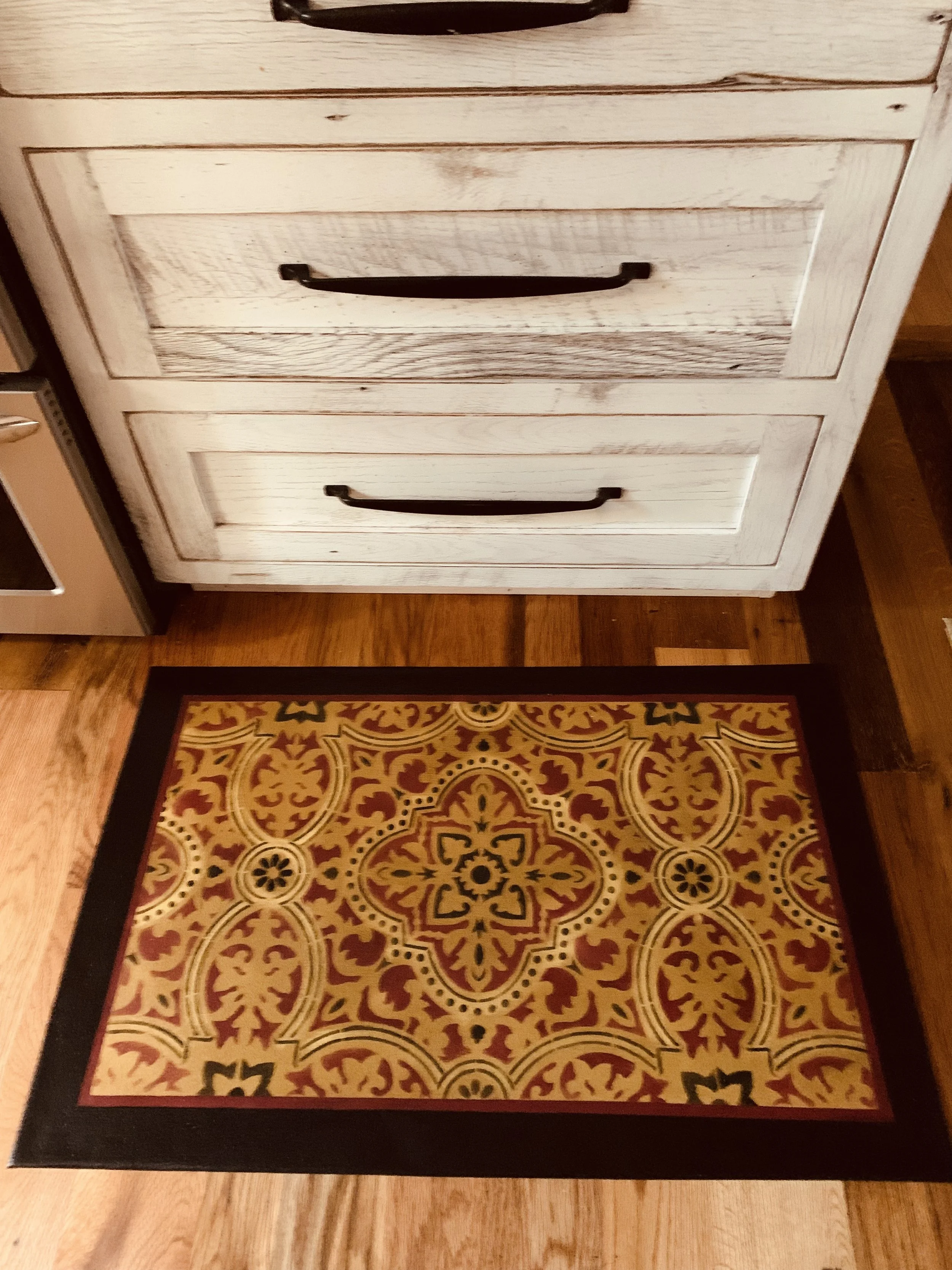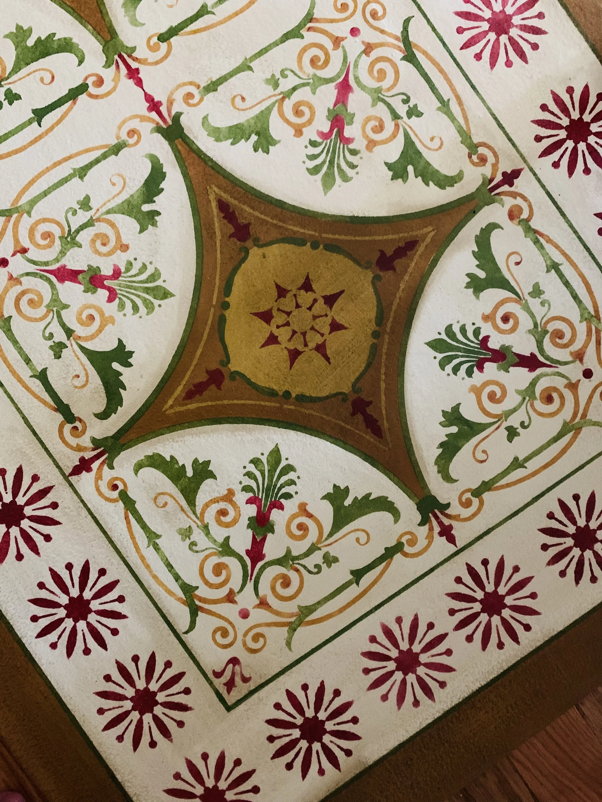 In-stock floorcloths are ready to ship in 2-3 days. Floorcloth items that are not in stock are custom made upon receipt of payment and can take 3-4 weeks completion, longer in humid weather due to curing time. Delivery time depends also on the size of your Floorcloth and amount of work I have at the time. No refunds available. Measure and choose your colors carefully.