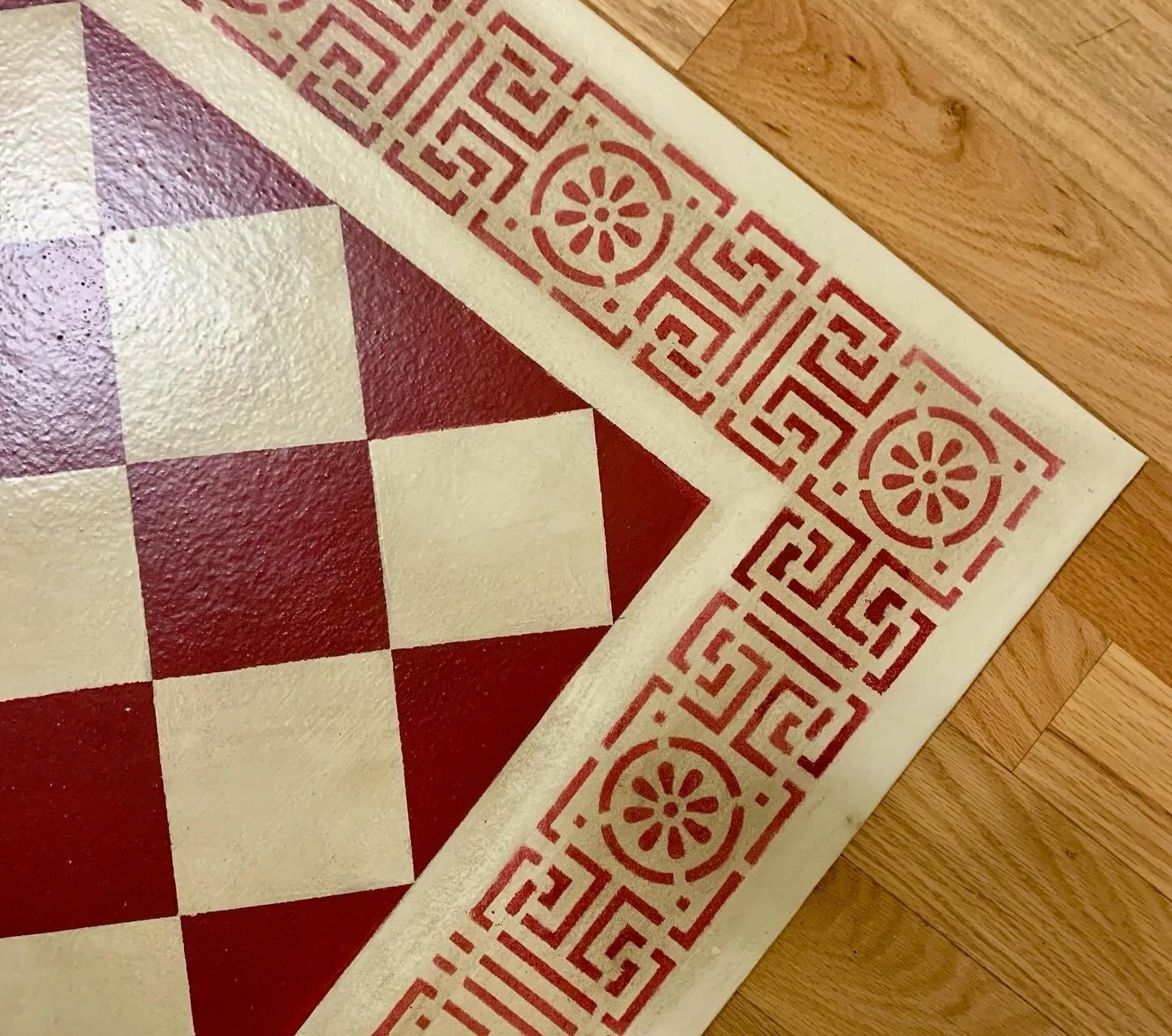 Image 1 of 3 Image 2 of 3 Image 3 of 3 3 x 5.5 Greek Key border with red and off white antiqued diamonds $275.00 Off white and dark red antiqued Quantity: Purchase Added! Off white and dark red antiqued